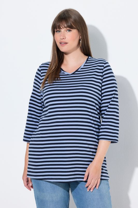 Eco Cotton Striped V-Neck 3/4 Sleeve Tee
