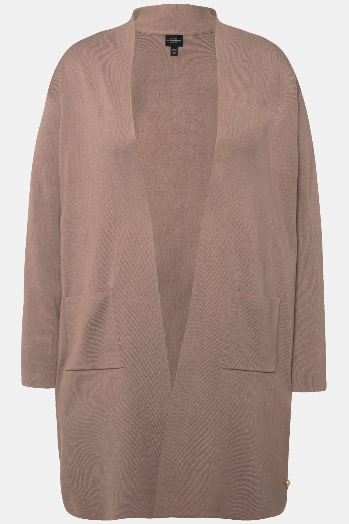 Long Pocket Cardigan Sweater - open front style made of soft flowing fine yarn with 2 pockets and long sleeves.