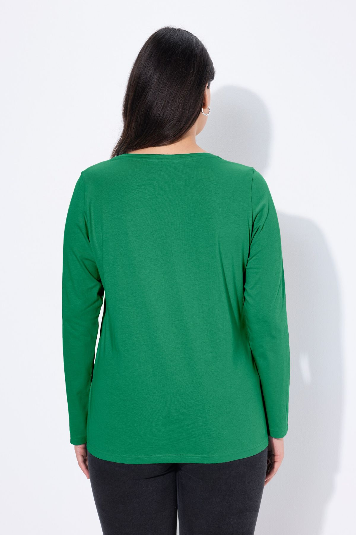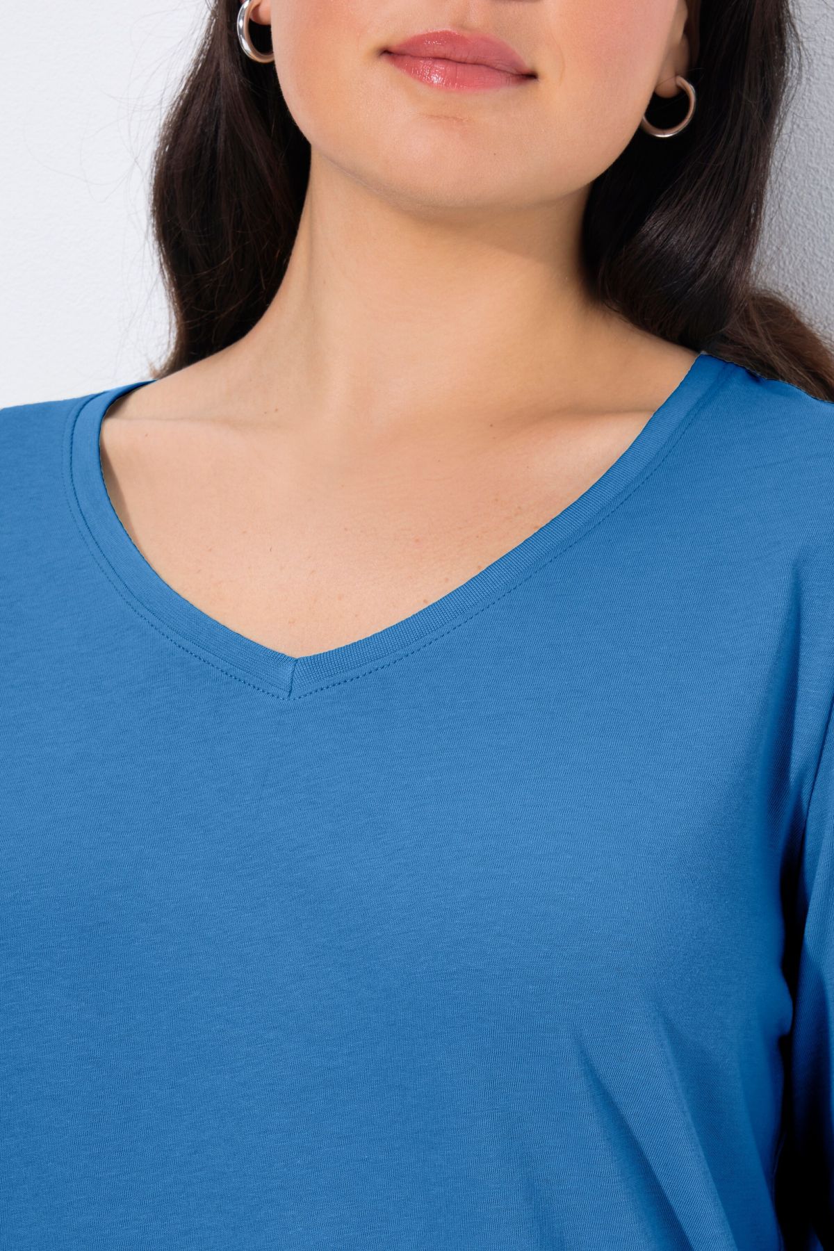 V-Neck Long Sleeves Slim Fit Cotton Knit Tee