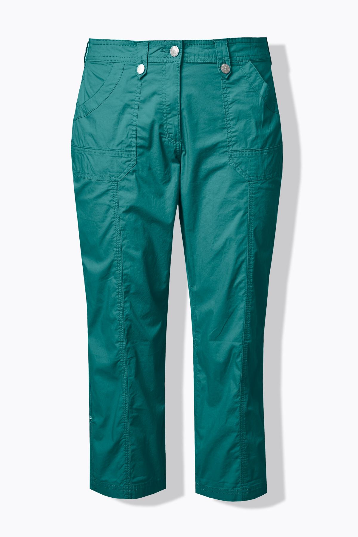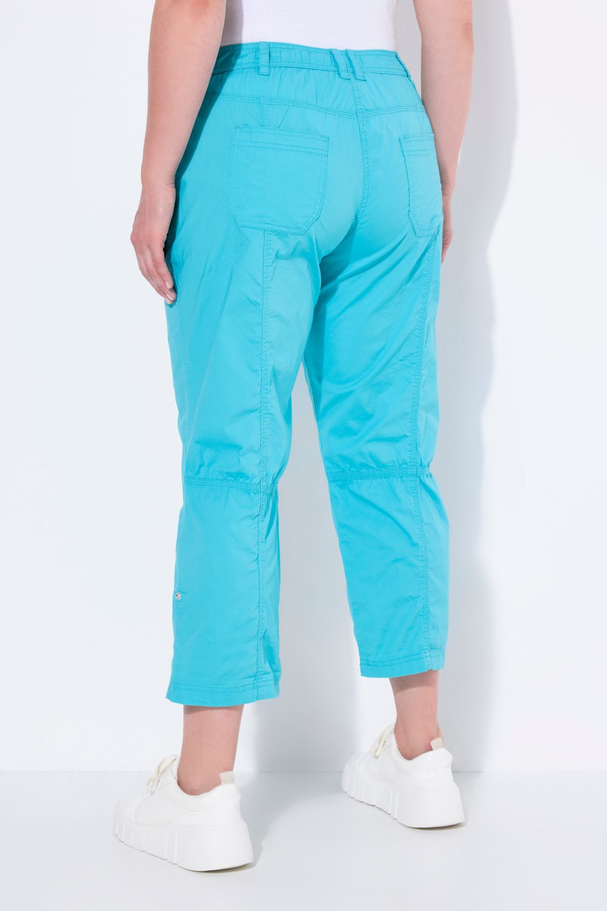 Roll-Tab Hem Stretch Cargo Pants - versatile roll-tab hem is just right for transitional dressing. 4-pocket design, flat front, elastic back waist, tab-button front belt loops, front button-and-zipper closure, and center front and back leg seam details.