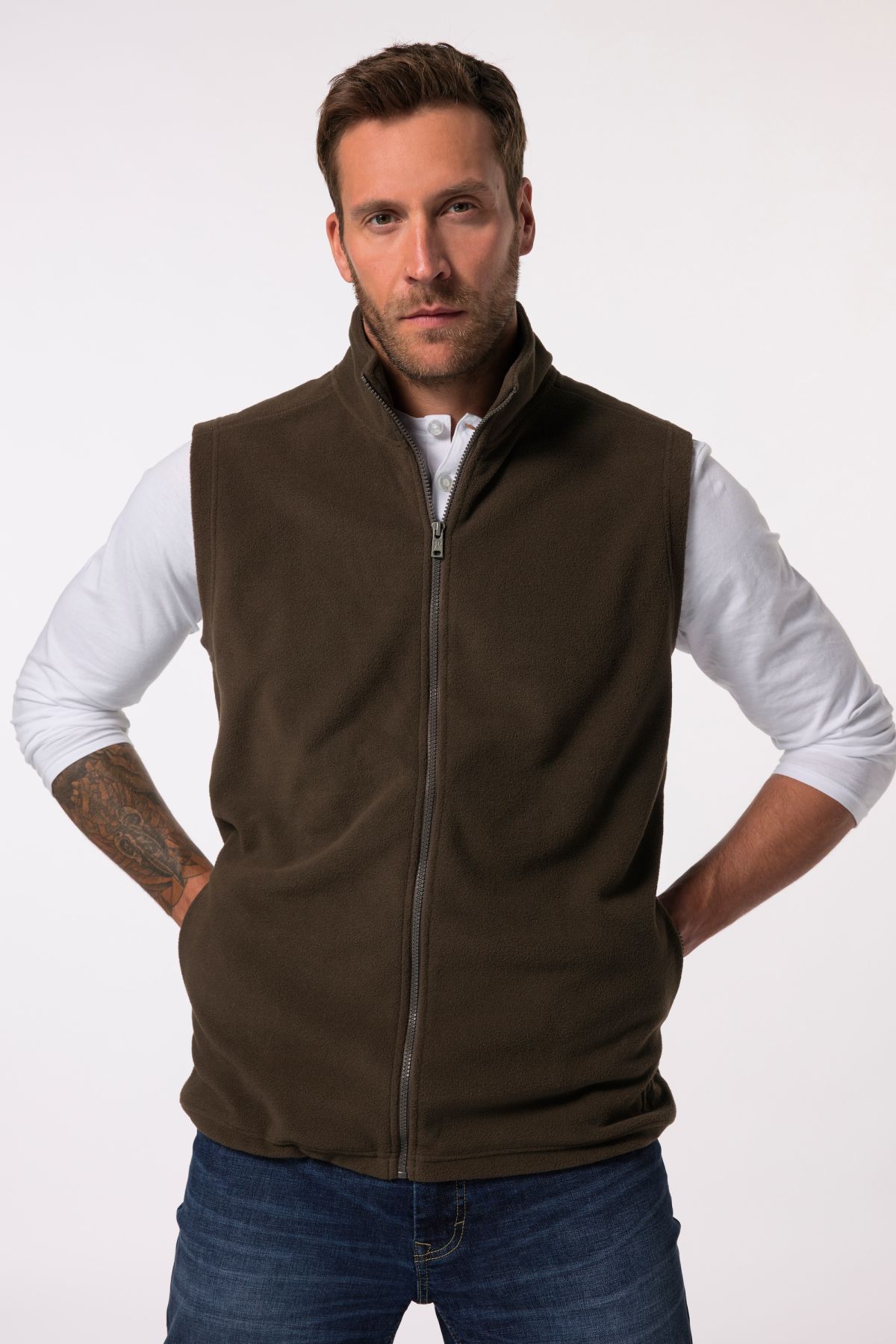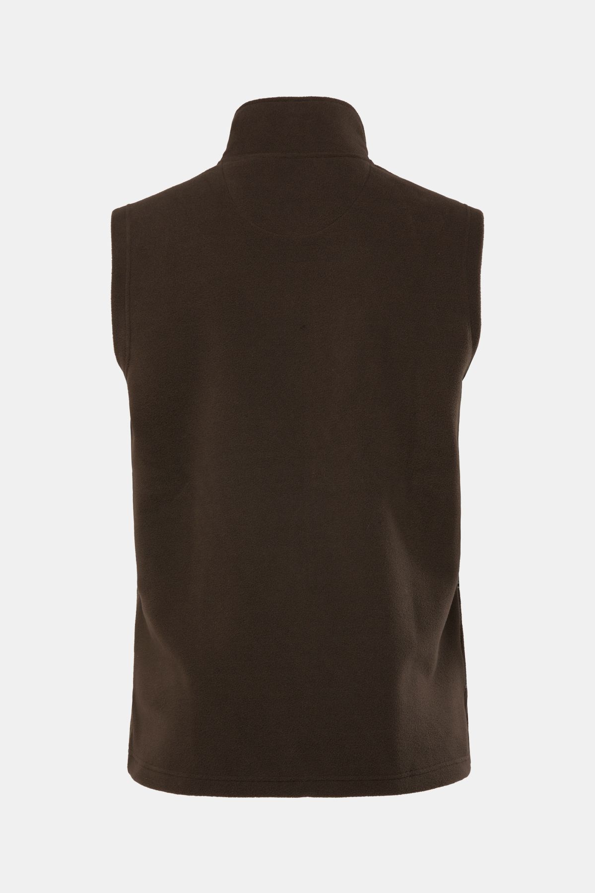 Fleece vest, soft and warm. Stand up collar, zipper fastening and 2 zip pockets. Drawstring hem.