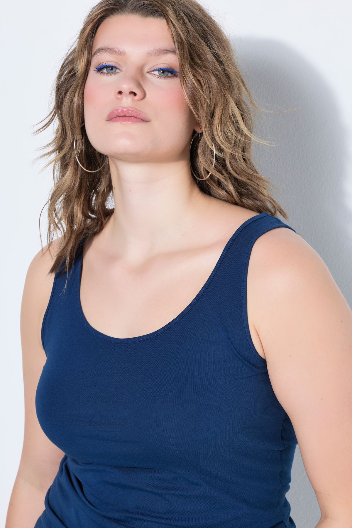 Basic Scoop Neck Tank Top - stretch jersey fabric - a perfect bottom layer. Young - fashionable - trendy! This is Studio Untold, the young big-size brand of Ulla Popken. Discover great garments with much love for details in proven fit. Easy to combine with and unique. <br /><br /><img style= float: left; margin-right: 20px; margin-buttom: 50px; cursor: pointer; alt= Sustainability src= https://images.ullapopken.de/cms/de/de/service/RSWS_Herz.png />With SO PROPER - SO PROSPECTIVE label you can see that our garments are made partially or even completely sustainably.<br /> <br />