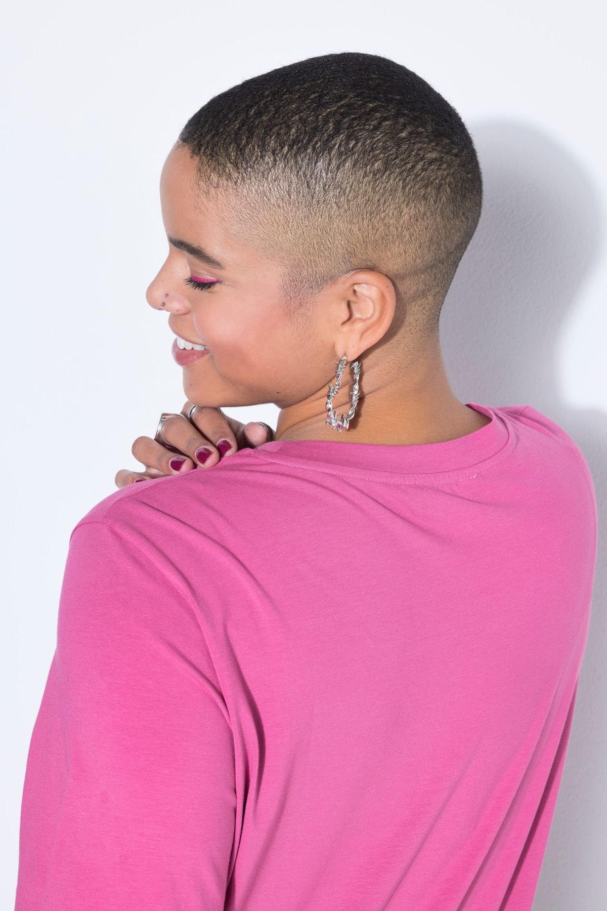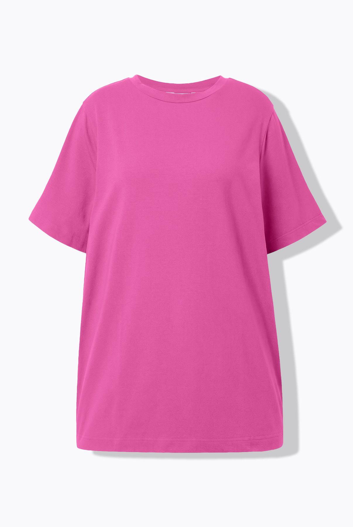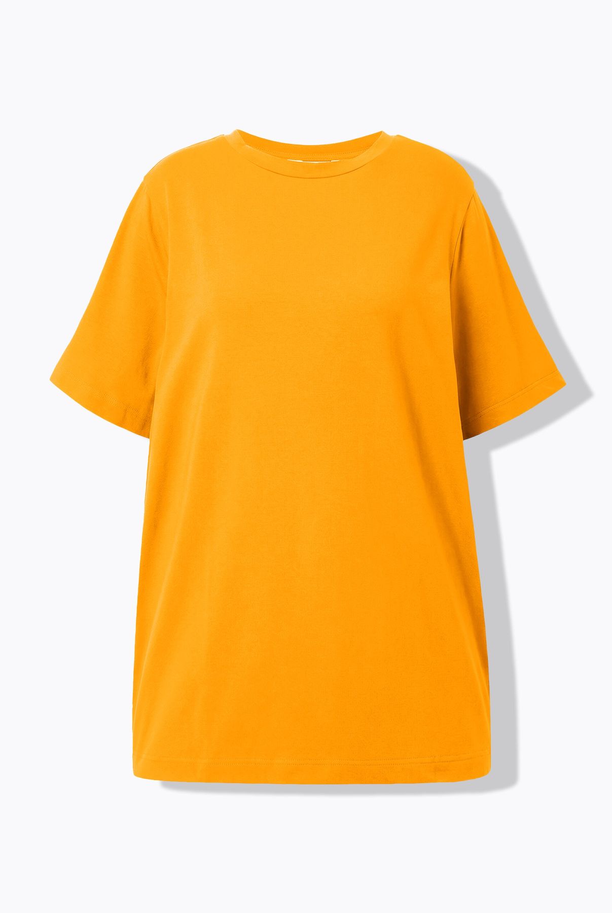 Round Neck Long Tee - wide and long cut with short sleeves.