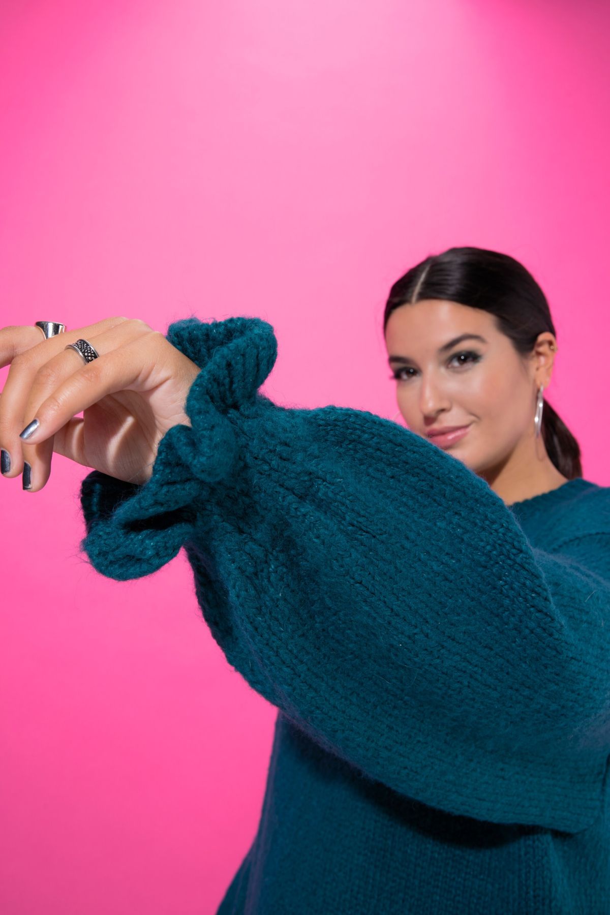 Ruffle Cuff Sweater Dress - A soft, chunky knit with wide bishop sleeves and ruffled cuffs.