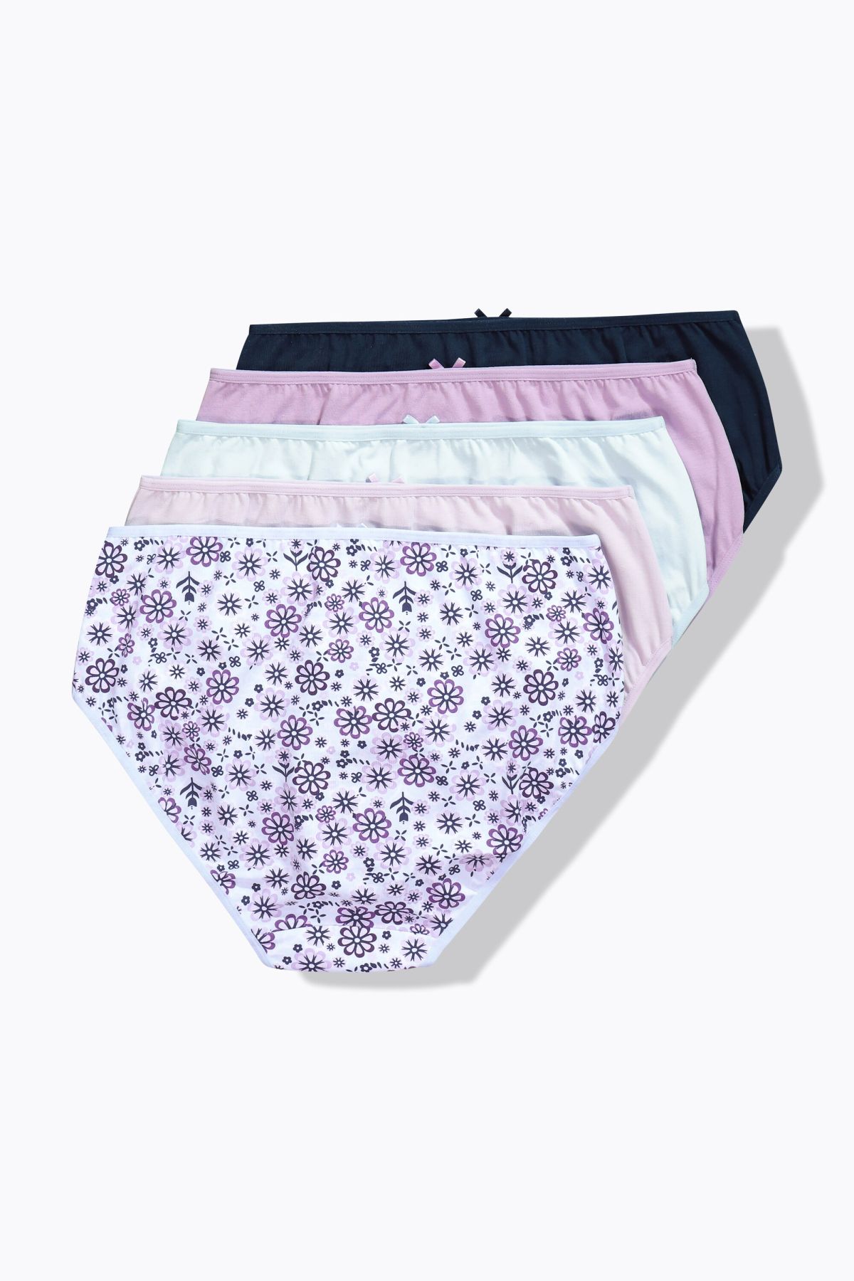 5 Pack of Panties- Floral - A convenient multipack in blue green floral tones. 1x floral print, 4x solid colors.