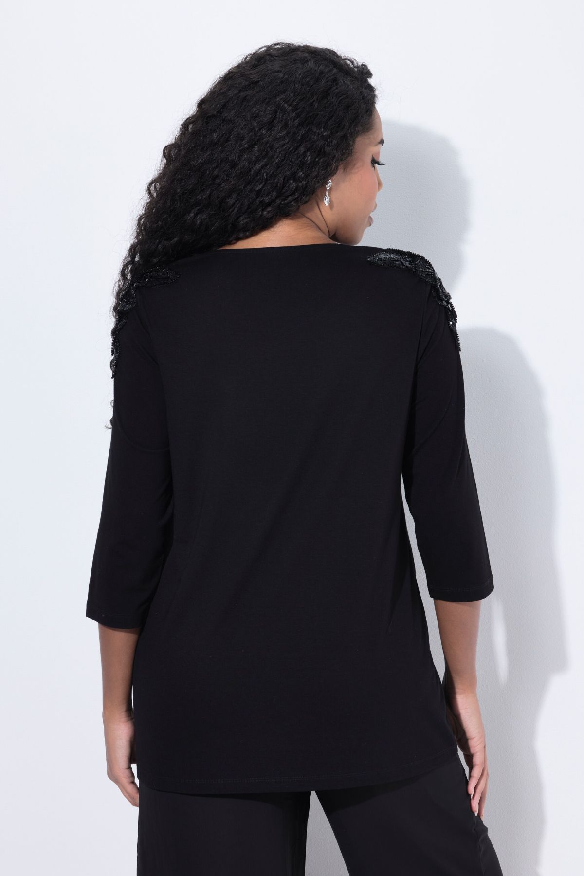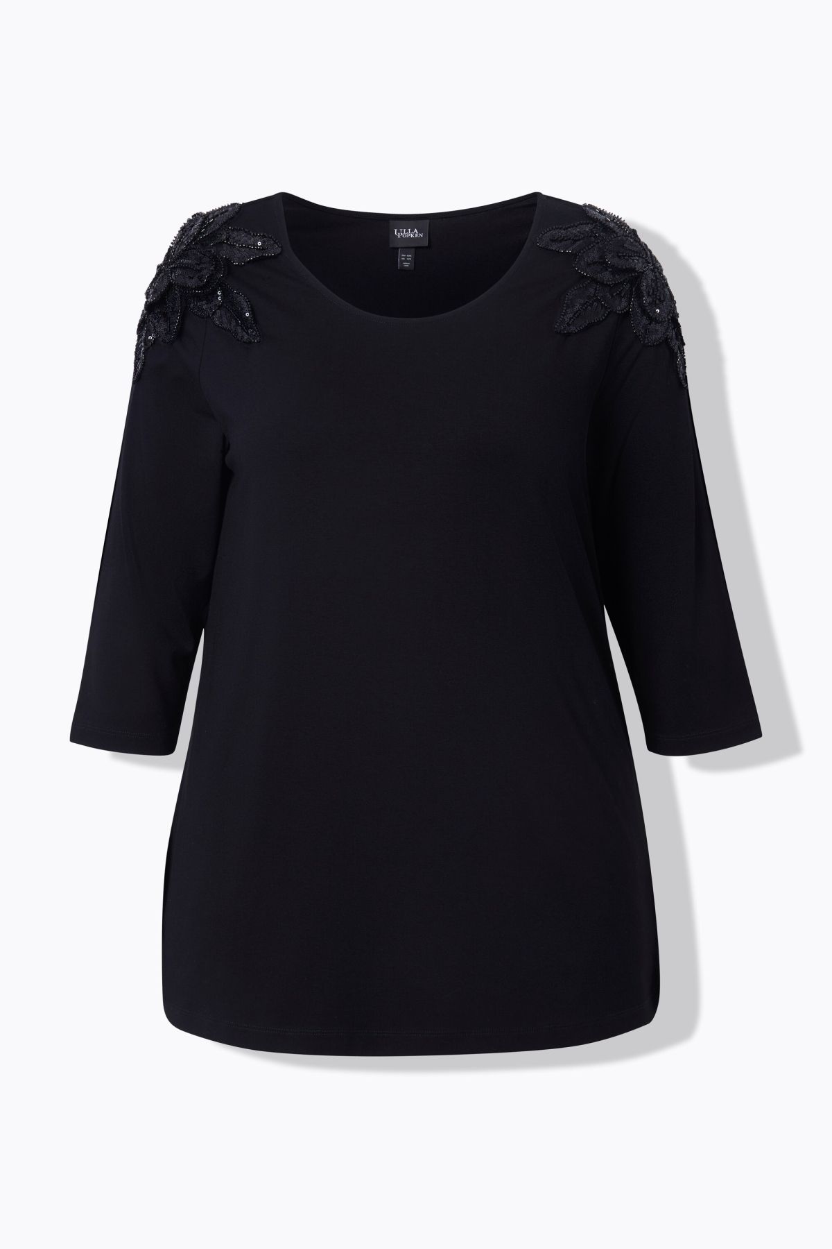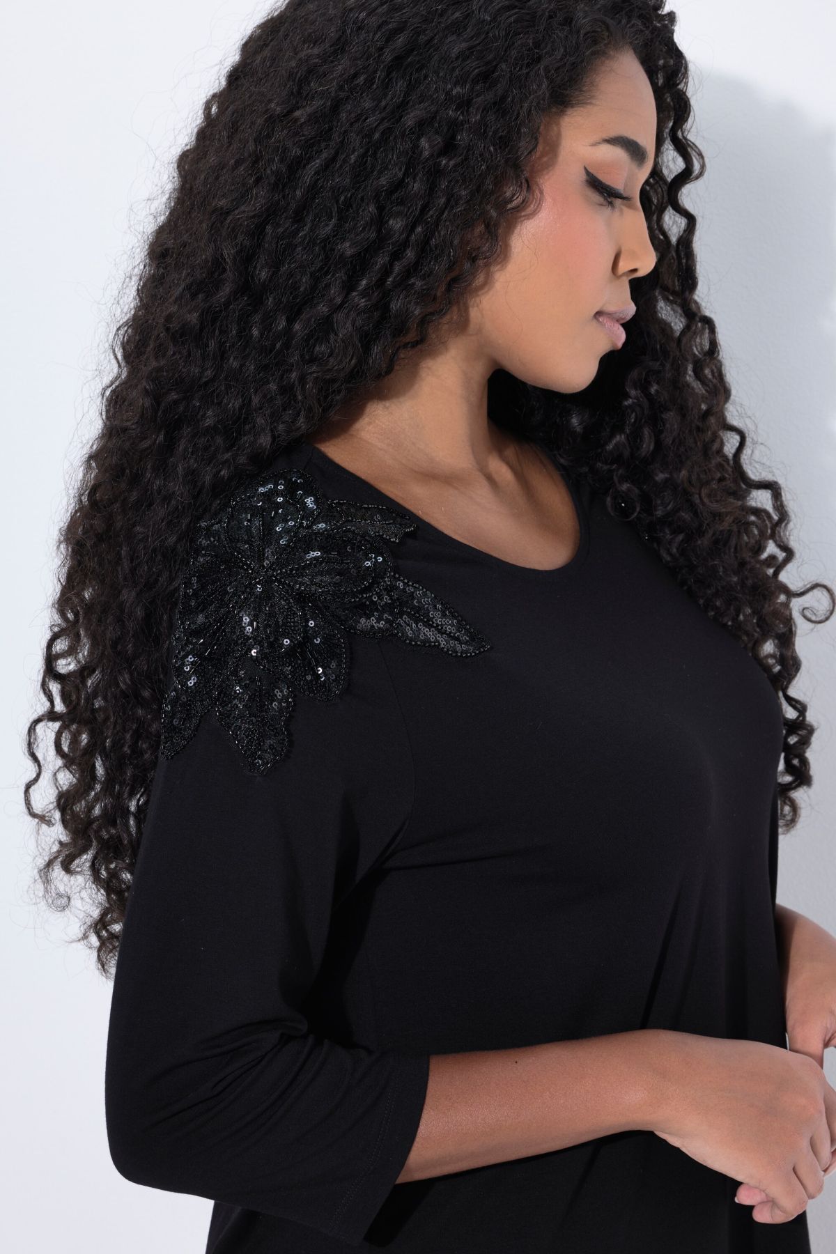 Flower Epaulet Top - A soft, stretch-fit jersey silhouette with sparkling flower epaulets for added drama.