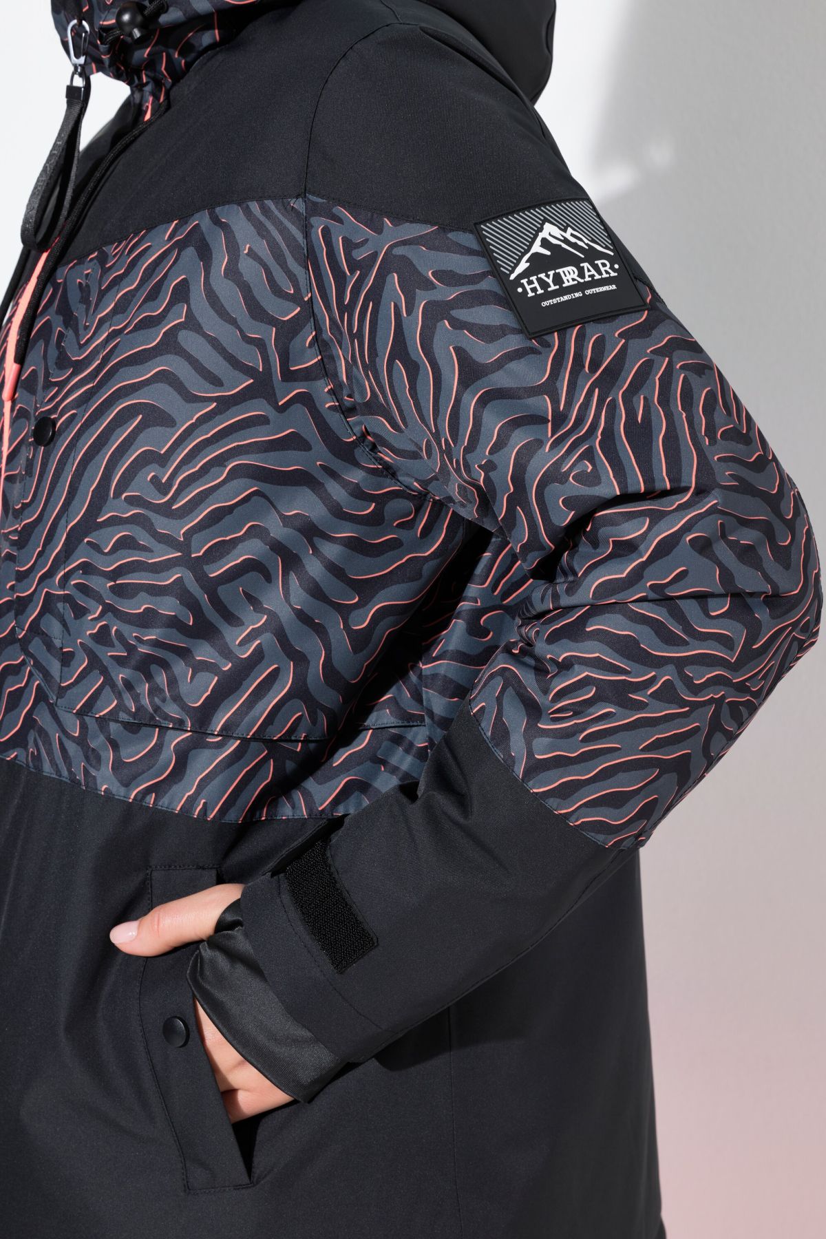 Водоустойчива (10 000 мм воден стълб), ветроустойчива, дишаща, с регулируема качулка и двупосочен цип, предпазител от сняг на талията и връзка за стягане във вътрешния подгъв, вътрешен джоб на гърдите и джоб за ски карта, както и 2 подплатени джоба с цип,