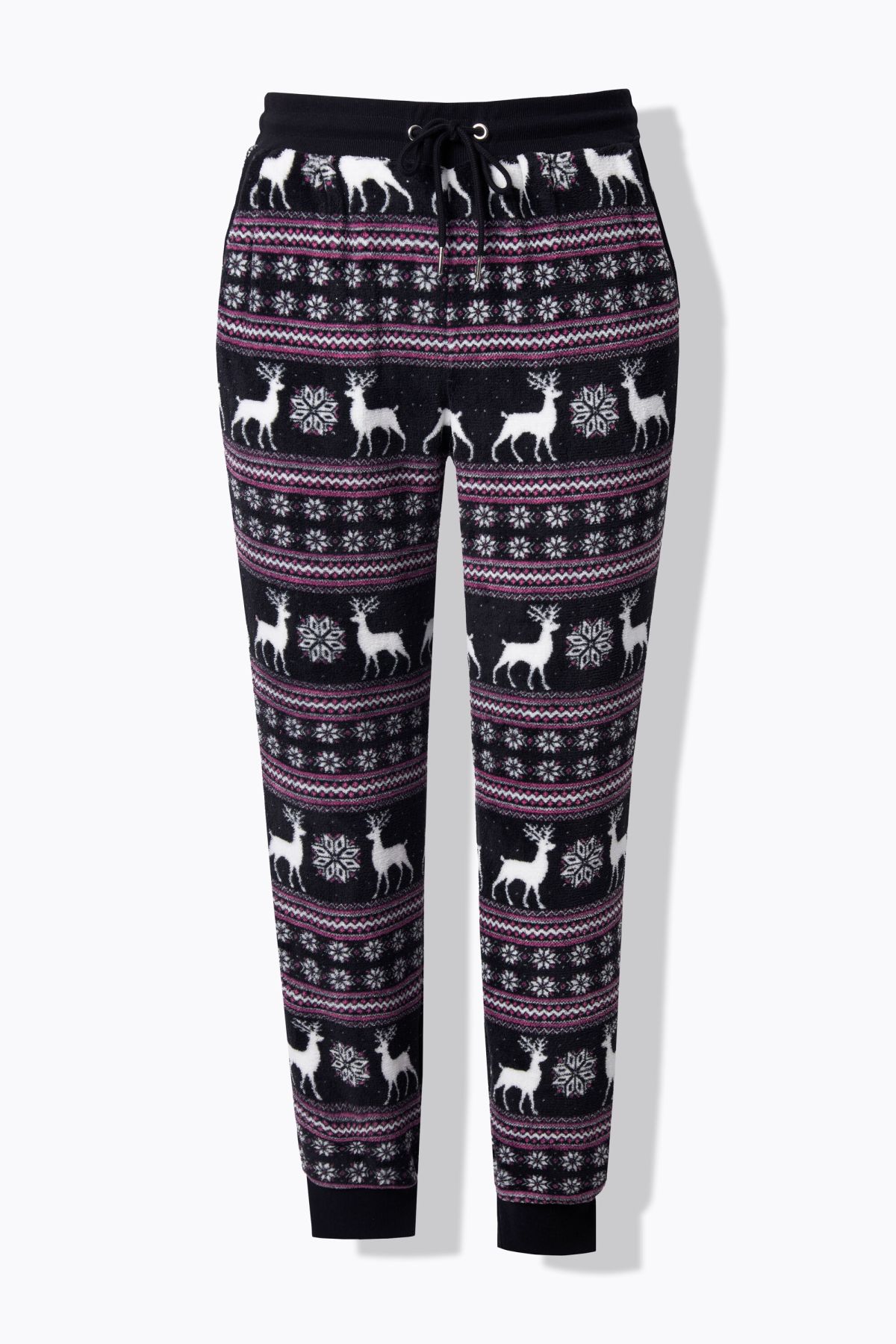 Norwegian Print Plush Lounge Pants - indulge in some serious relaxation when you lounge in this soft and cozy style. Contrast ribbed knit adjustable drawstring tie elastic waist, contrast trim side pockets, allover print legs, and contrast ribbed knit cuffs.