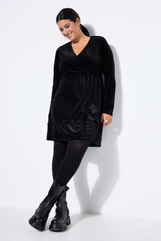 A-line Fit Dress, made of elegant shimmering velvet in wrap look - with V-neck, long sleeves and front doubled skirt.