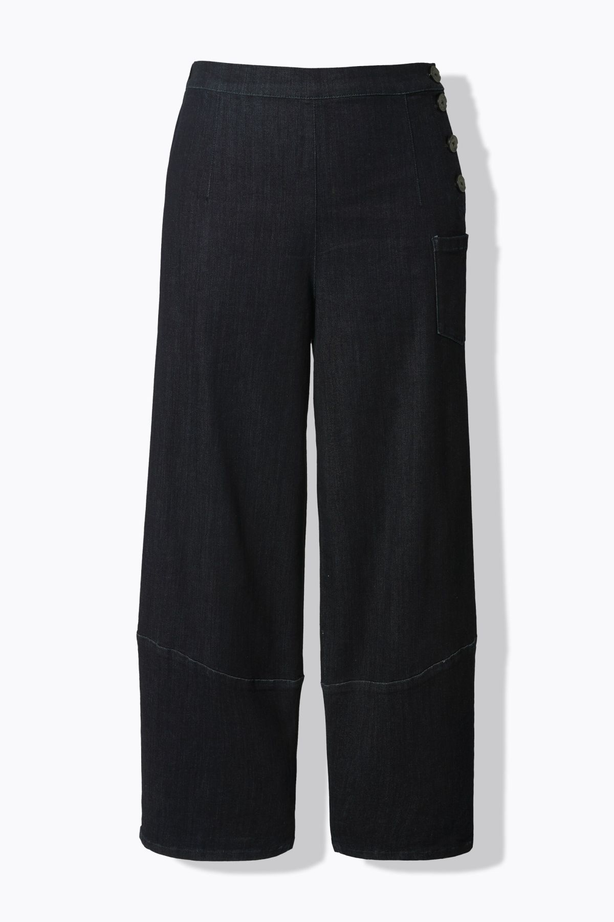 Organic Cotton Barrel Jeans - A trendy, modern silhouette with a wide barrel leg and practical cargo pockets.