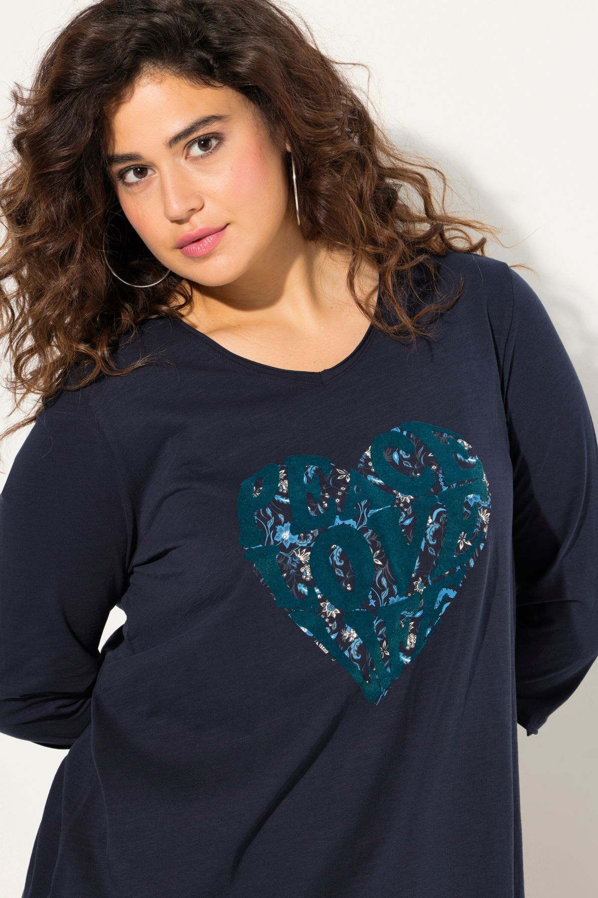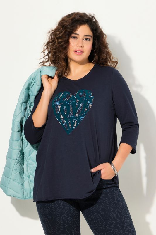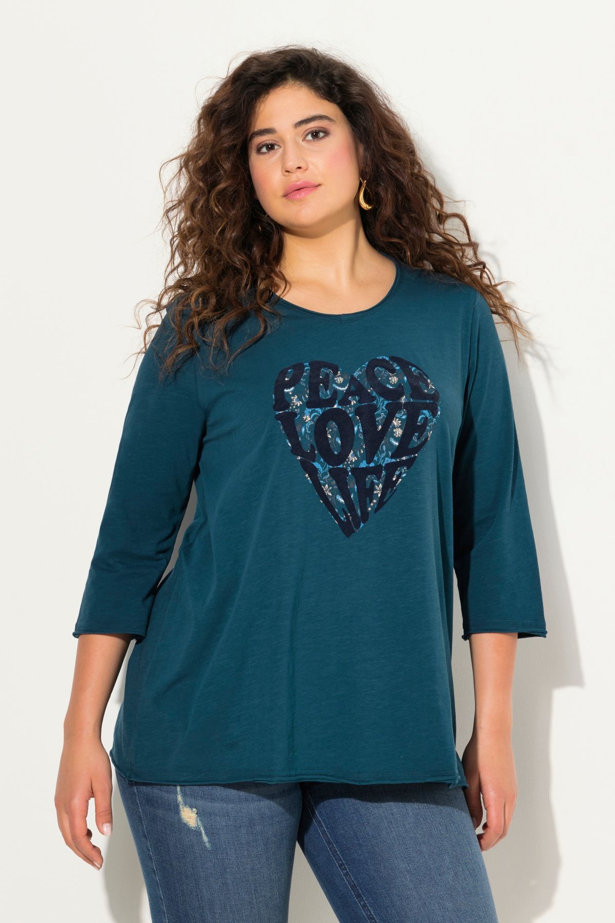 Peace Love Life Graphic Tee - A floral print heart graphic with textured Peace, Love, Life lettering for colorful flair.