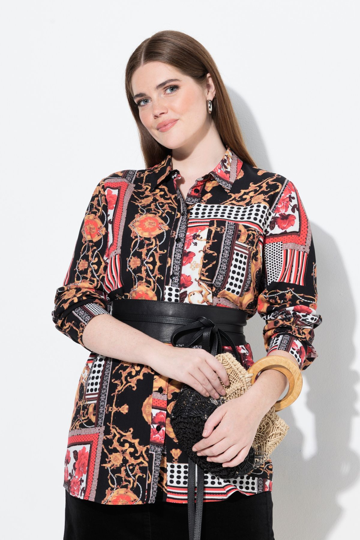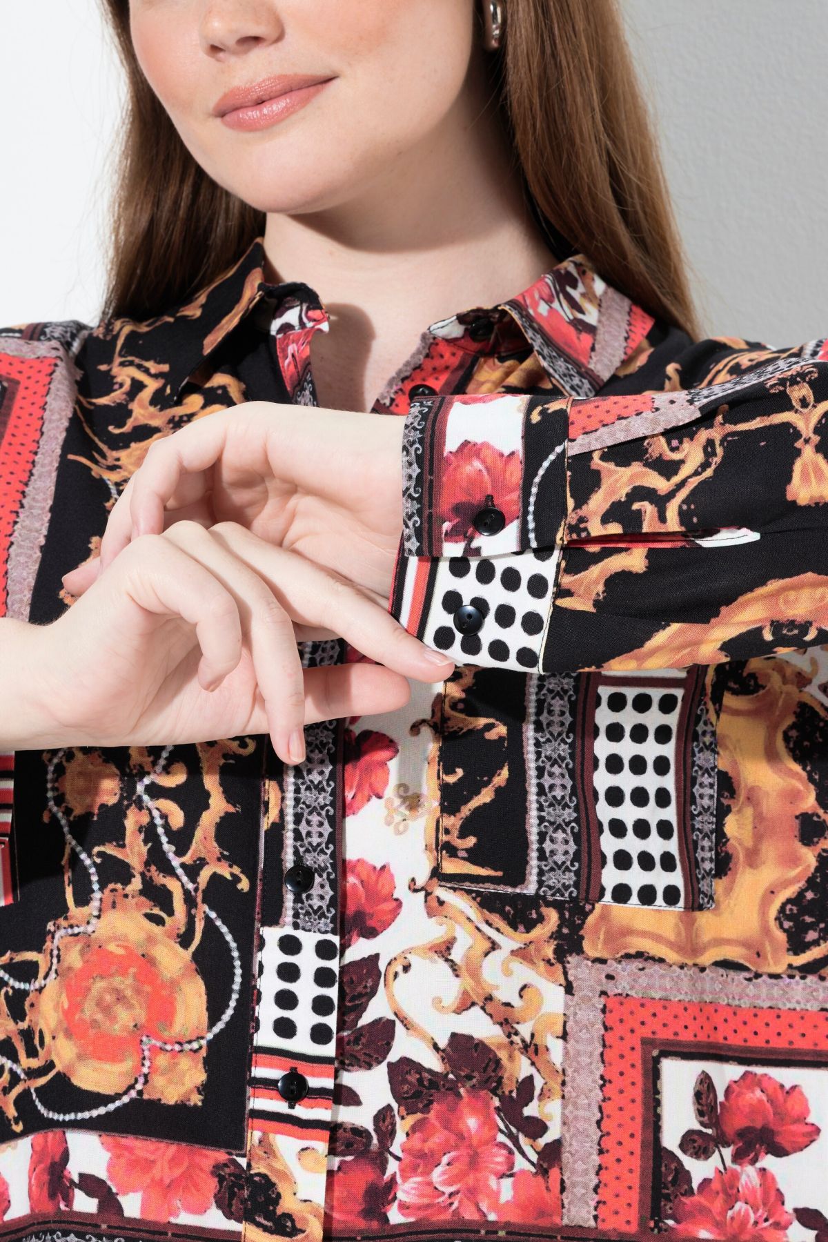 Mixed Country House Pattern Long Sleeve Button-Down Blouse
