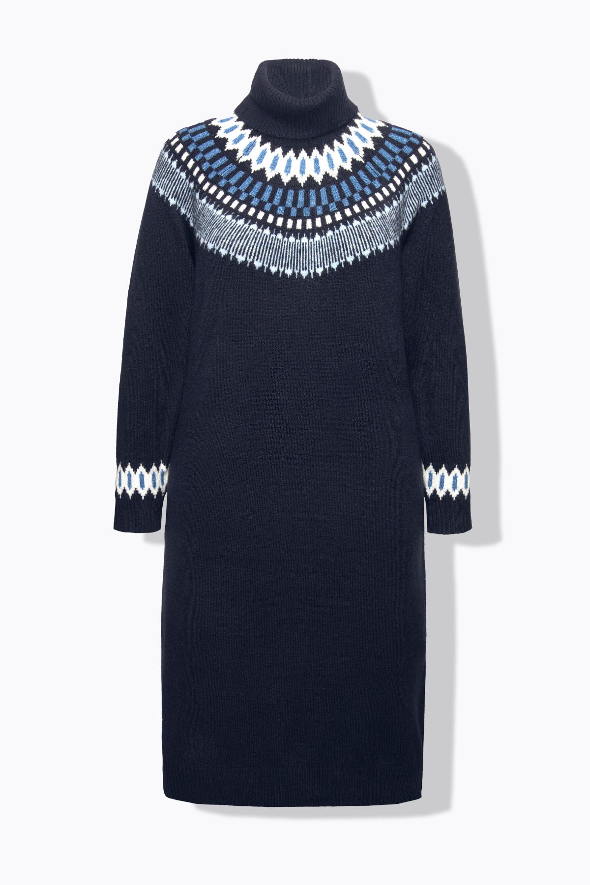 Norwegian Striped Knit Dress - Traditional Norwegian-inspired stripes decorate the neckline and sleeves of this warm, knit style.