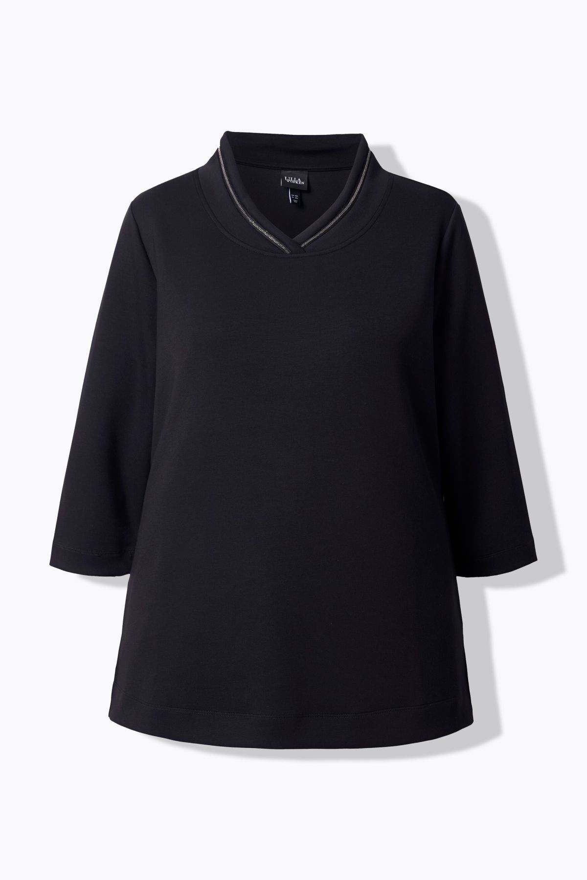 Decorative Chain Collar Sweatshirt - A small wrapped collar decorated with a sparkling metallic chain adds edgy flair to this comfortable stretch-fit design.