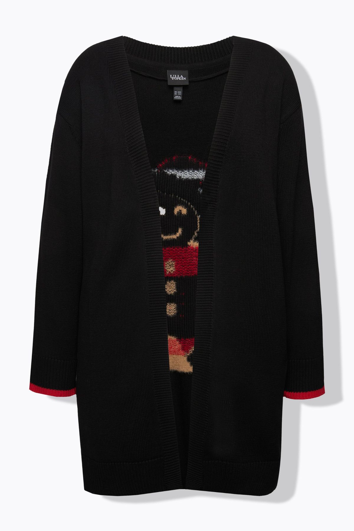 Gingerbread Man Pom Pom Cardigan - An oversized gingerbread man with pom-pom buttons adds a playful air to this relaxed, open shape silhouette.
