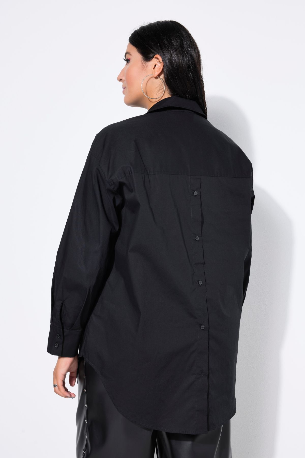 Back Button Blouse - A trendy, modern twist on the classic button down with a full-length button placket in the front, and a partial button placket in the back.