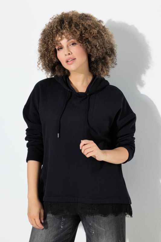 Lace Trim Hoodie - Delicate scalloped lace trim adds feminine flair to this classic pick.