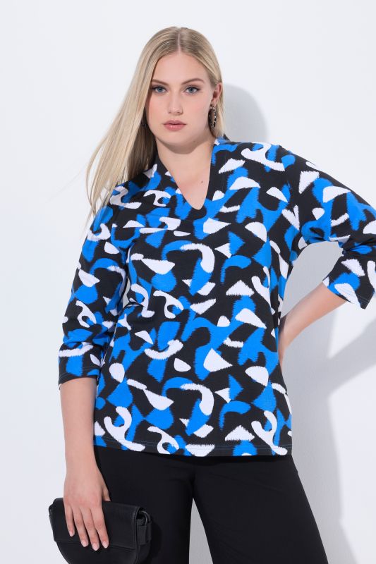 Abstract Print Tee - Featuring a modern goblet collar for a more sophisticated feel.
