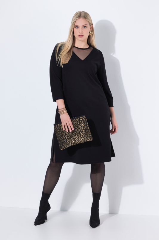 Mesh Panel Dress - A sheer mesh panel neckline adds a hint of allure to this understated design.