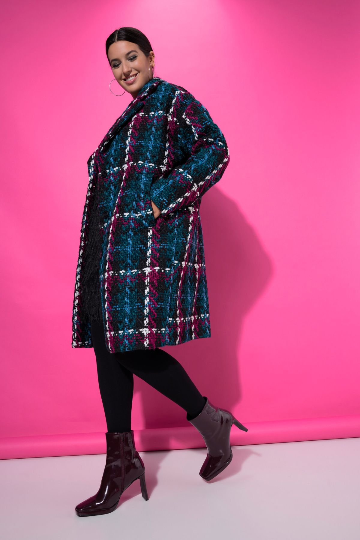 Oversized Plaid Coat - With colorful stripes to brighten up any wintry day.