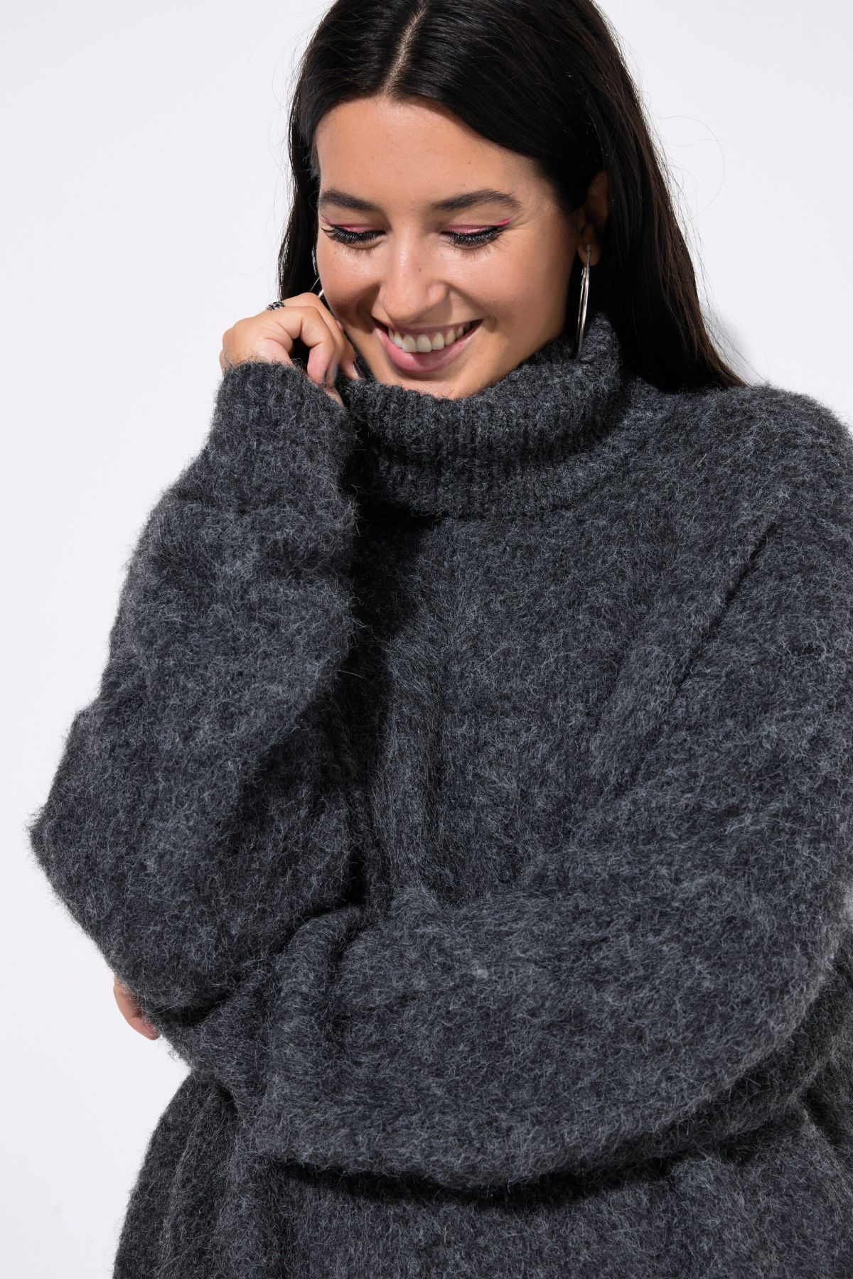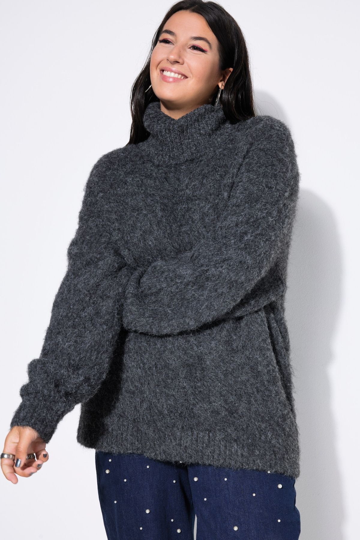 Fluffy Turtleneck Sweater - A retro-inspired texture on a chic modern silhouette.