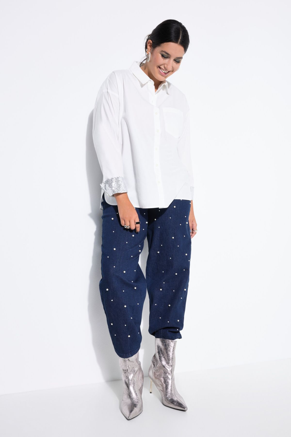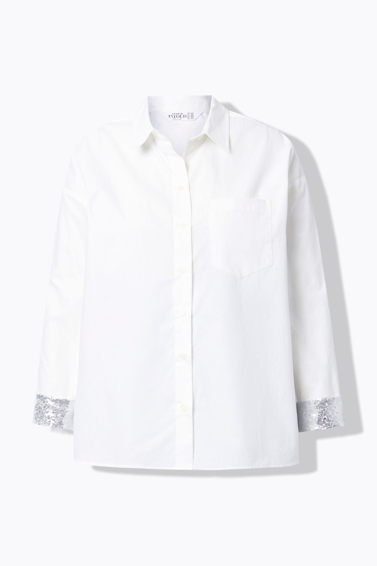 Glitter Cuff Button Down Blouse - With sequined cuffs for a touch of sparkle.
