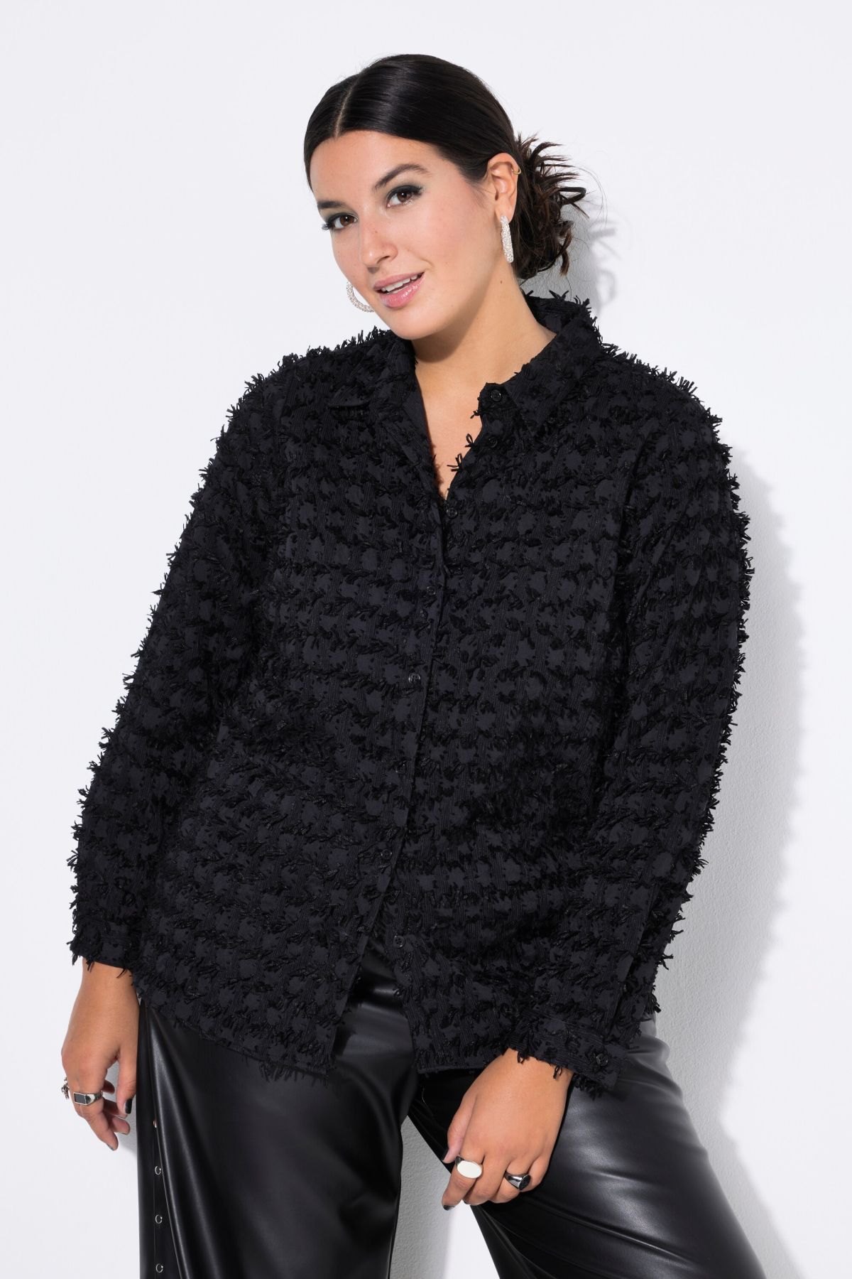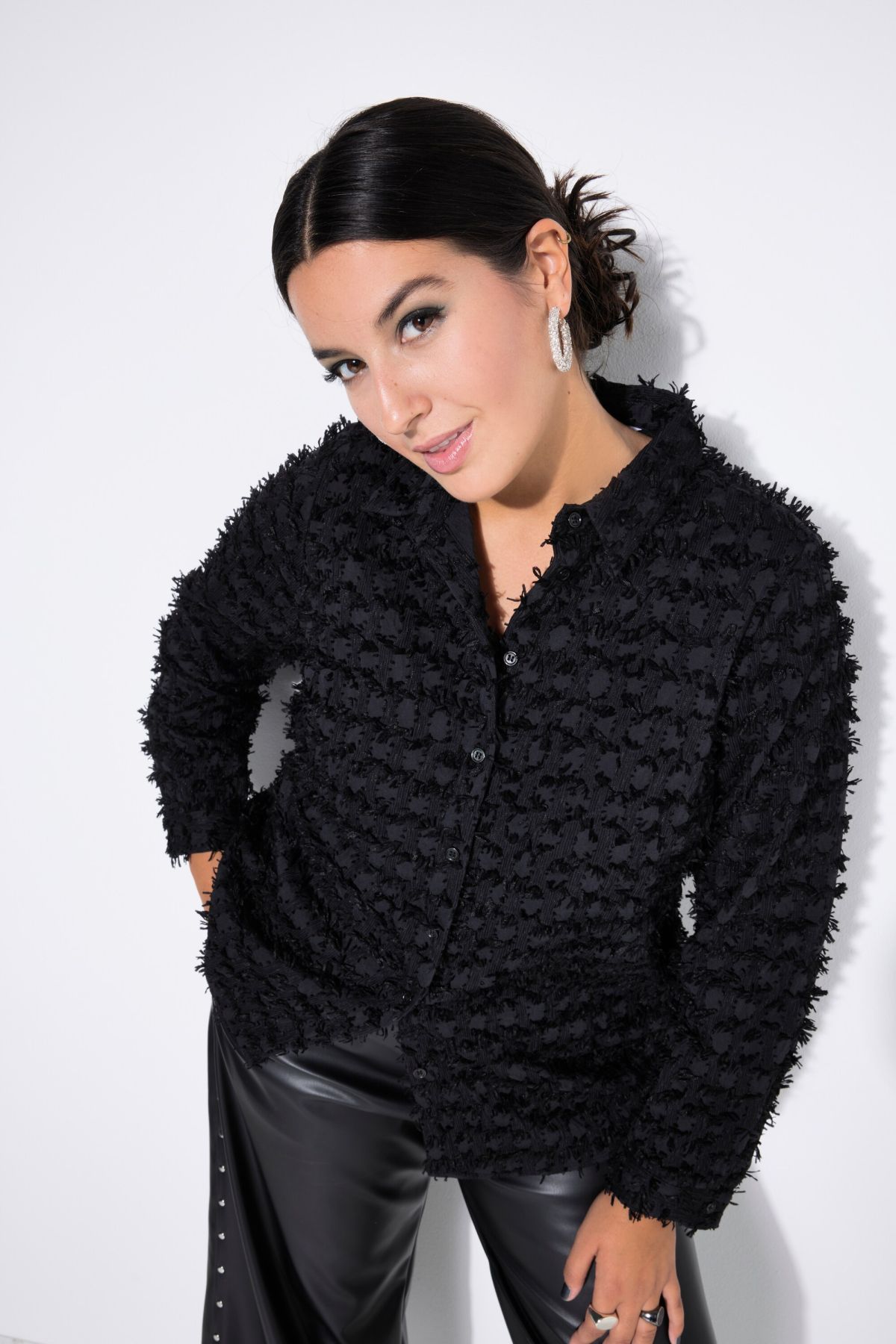 Fringed Button Down Blouse - Add texture to your look with this fluffy fringed silhouette.