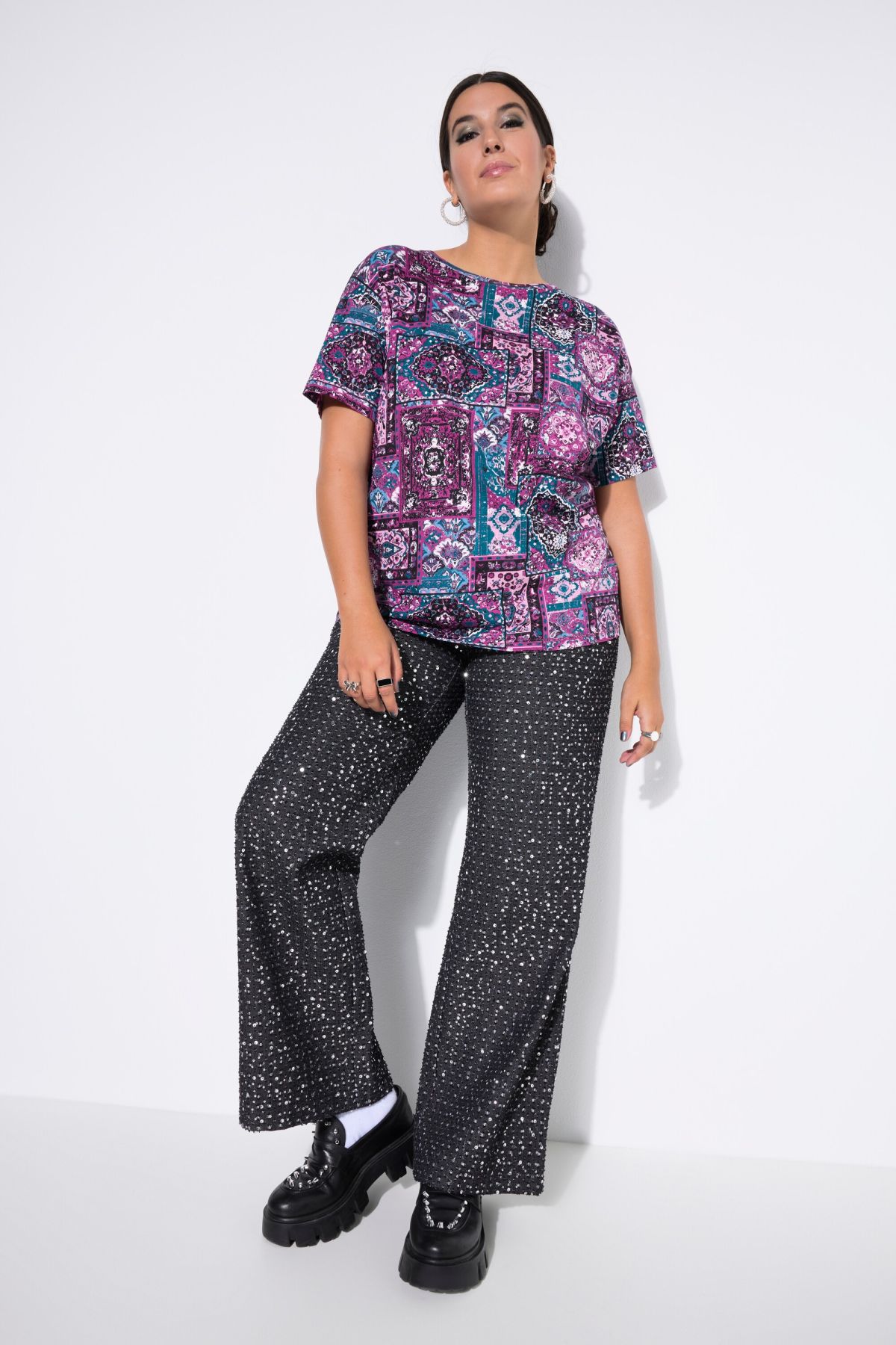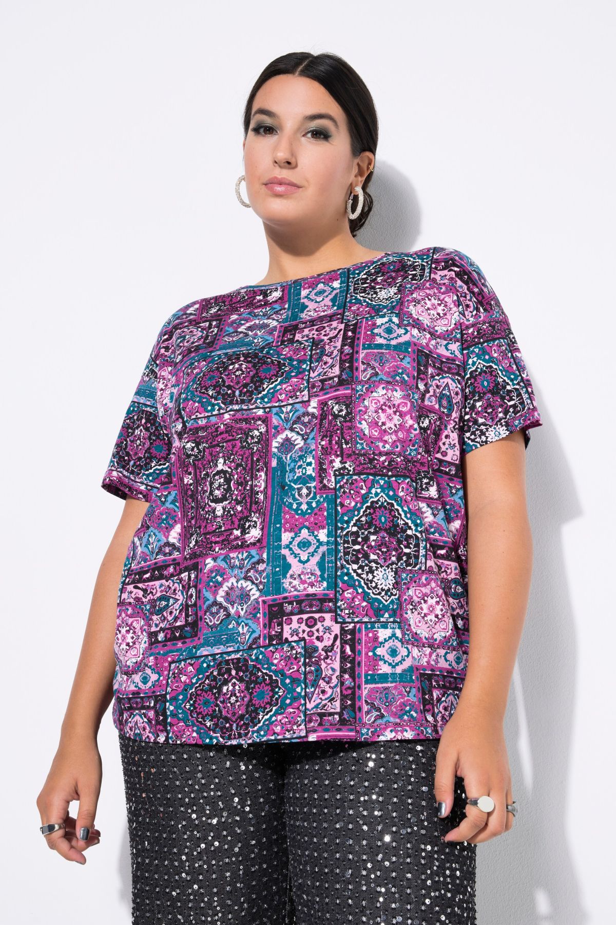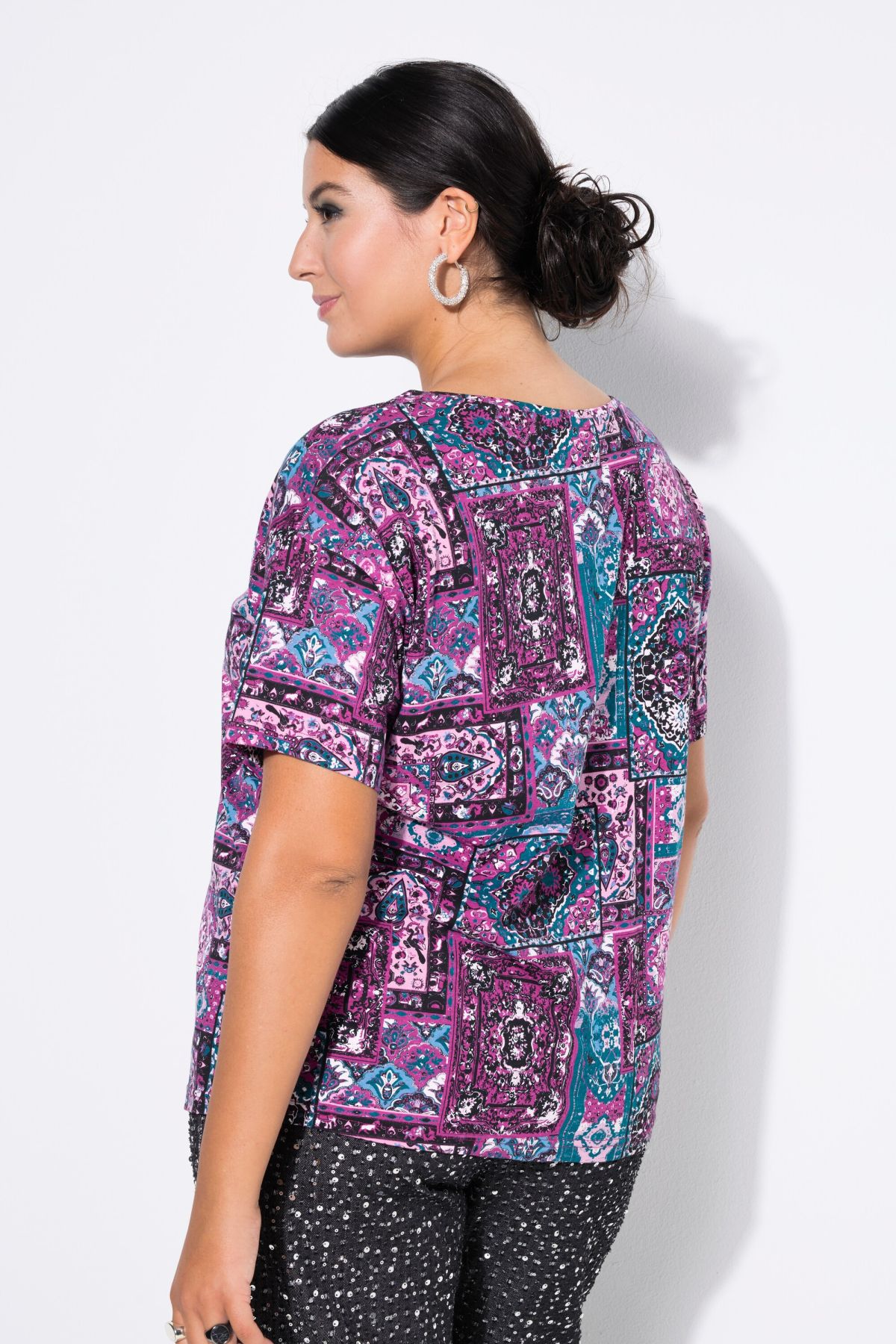Patchwork Print Tee - An eclectic, bohemian-inspired print in a bright, luscious colorway.