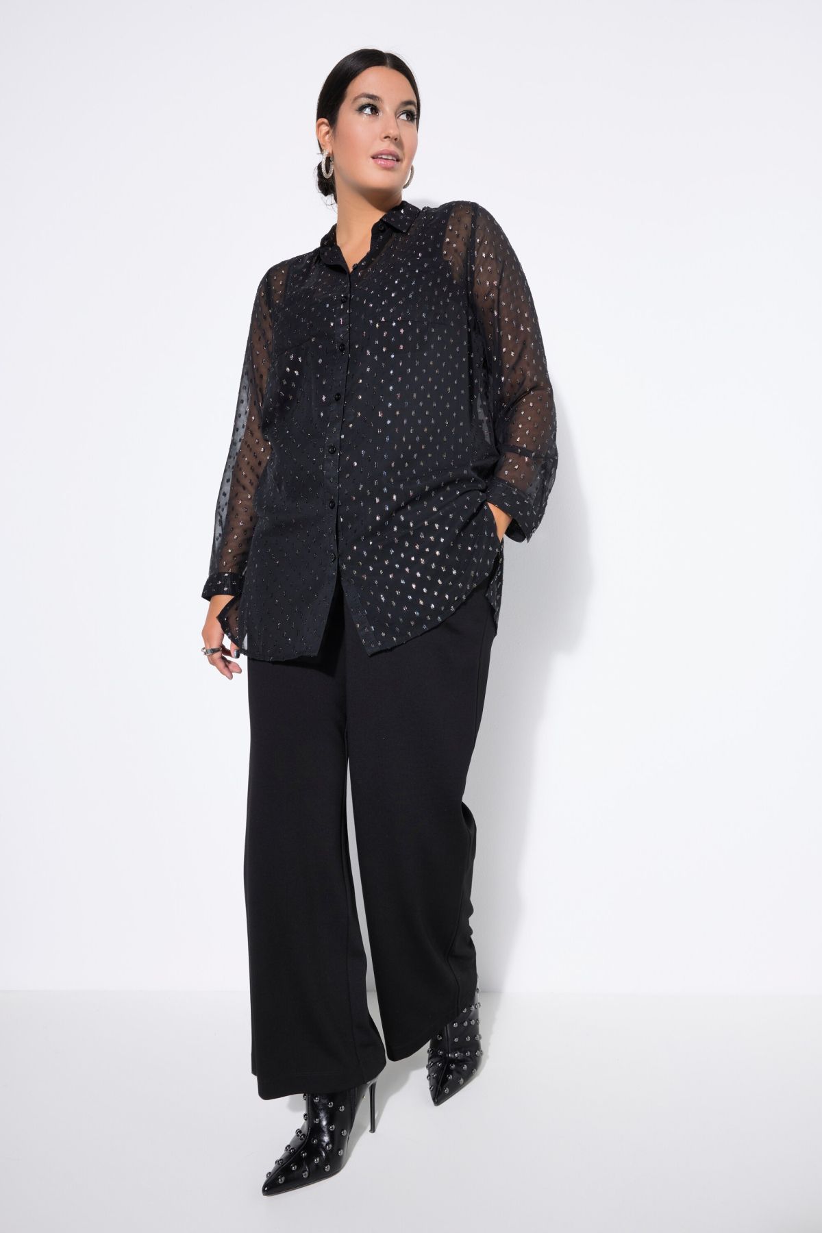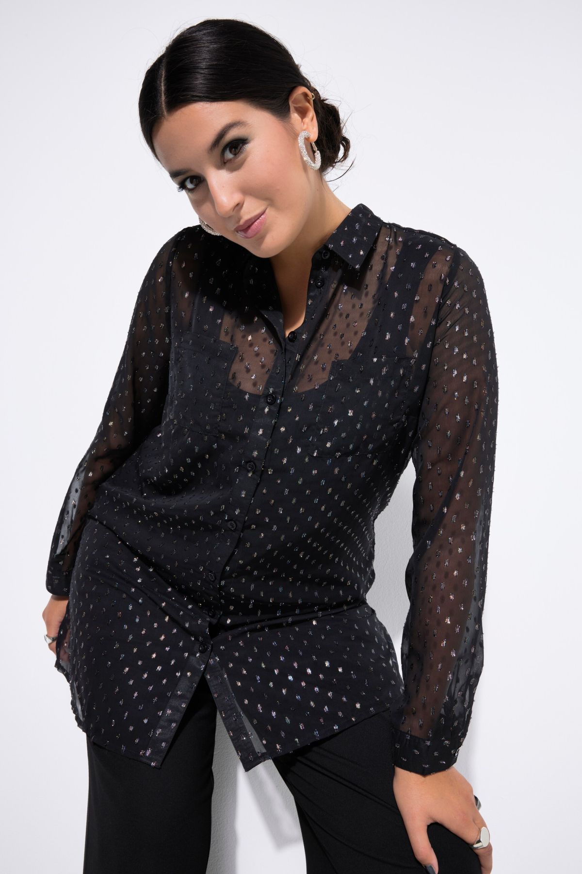 Sheer Sparkling Chiffon Blouse - Add a touch of sparkle to your outfit with this sheer layering pick.