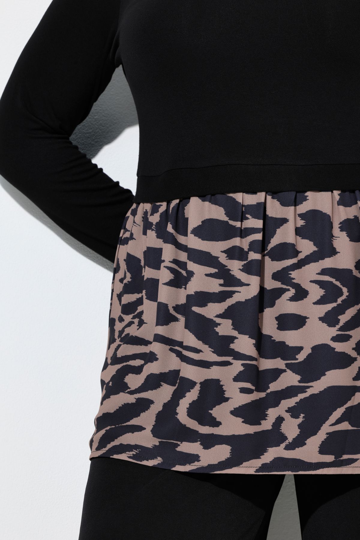 Animal Print A-Line Knit Tunic - With a bold printed flounce panel hemline.
