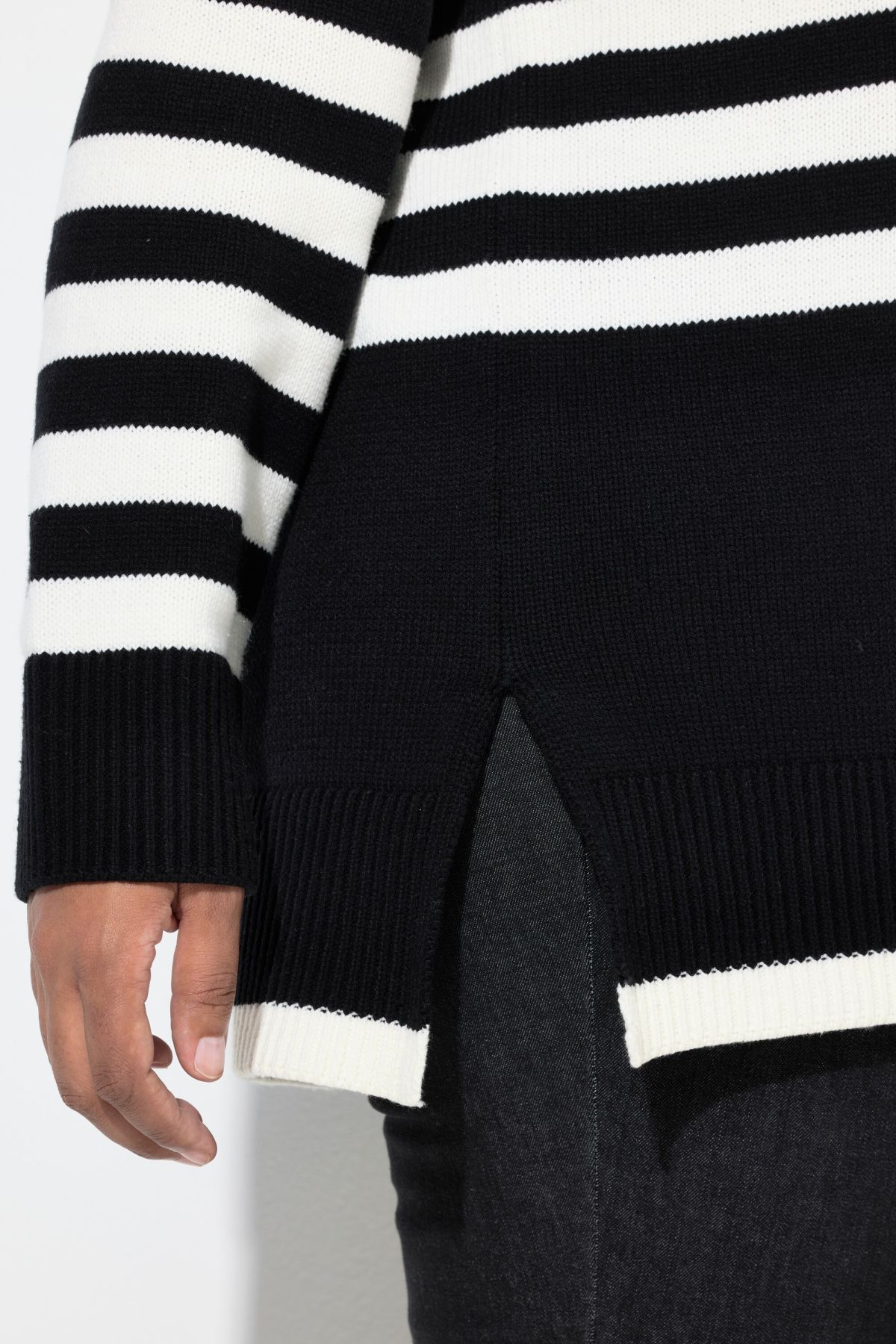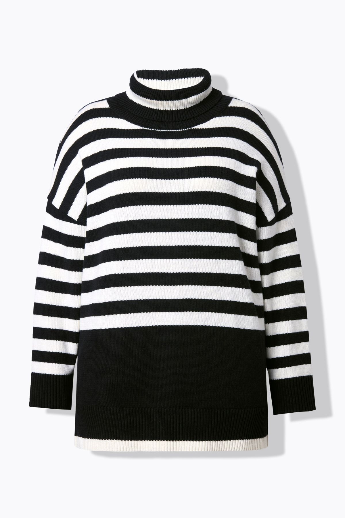 Striped Stand-Up Collar Sweater - Designed with dropped shoulders and long sleeves for effortless comfort.