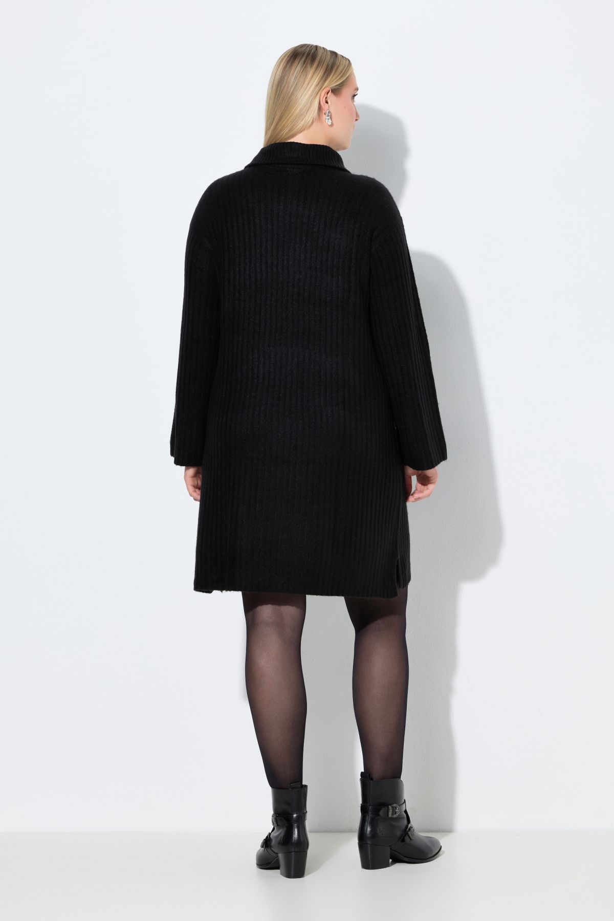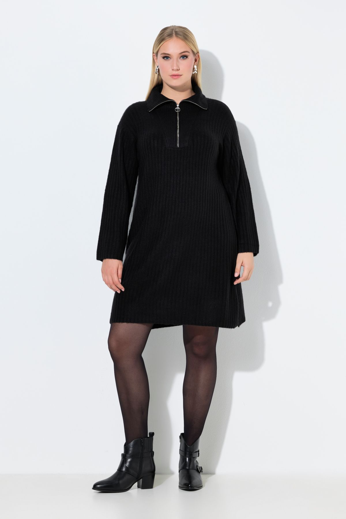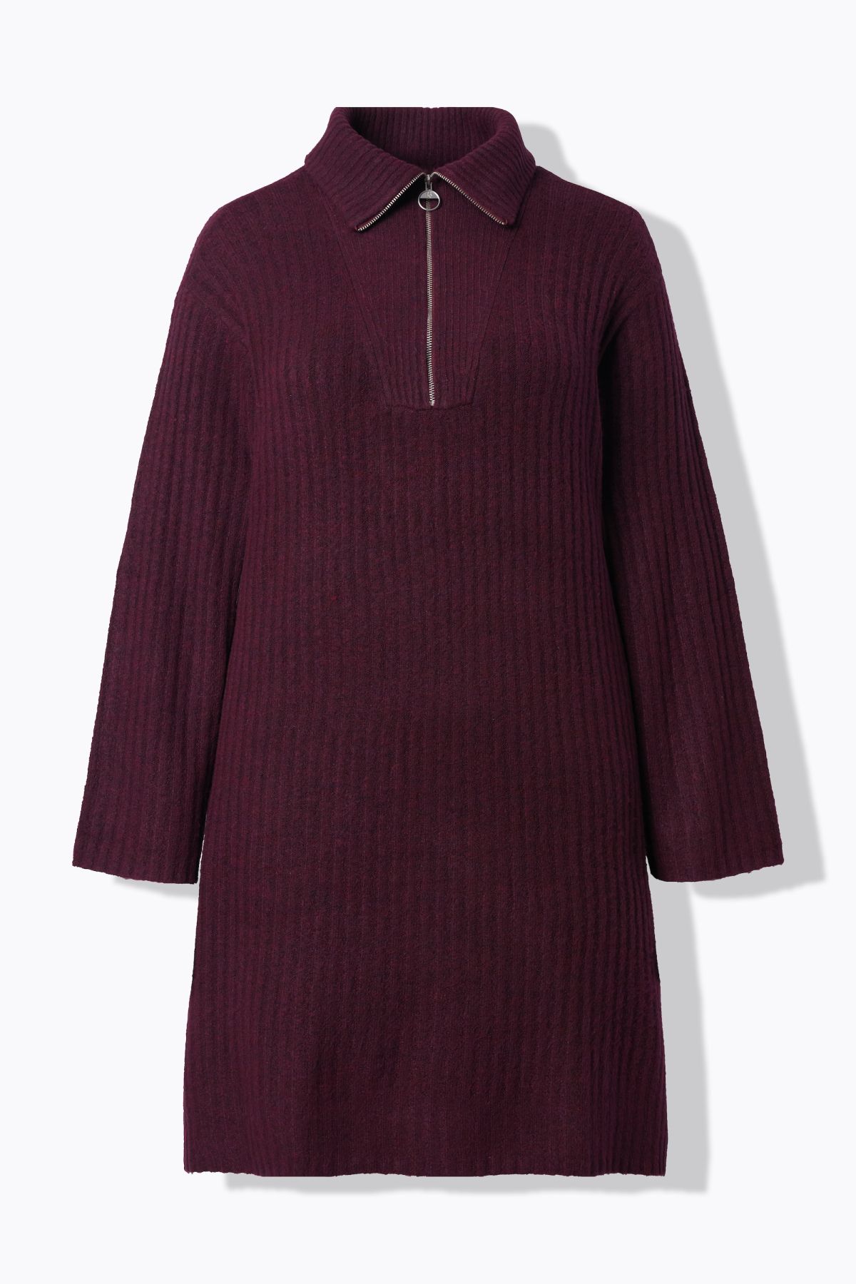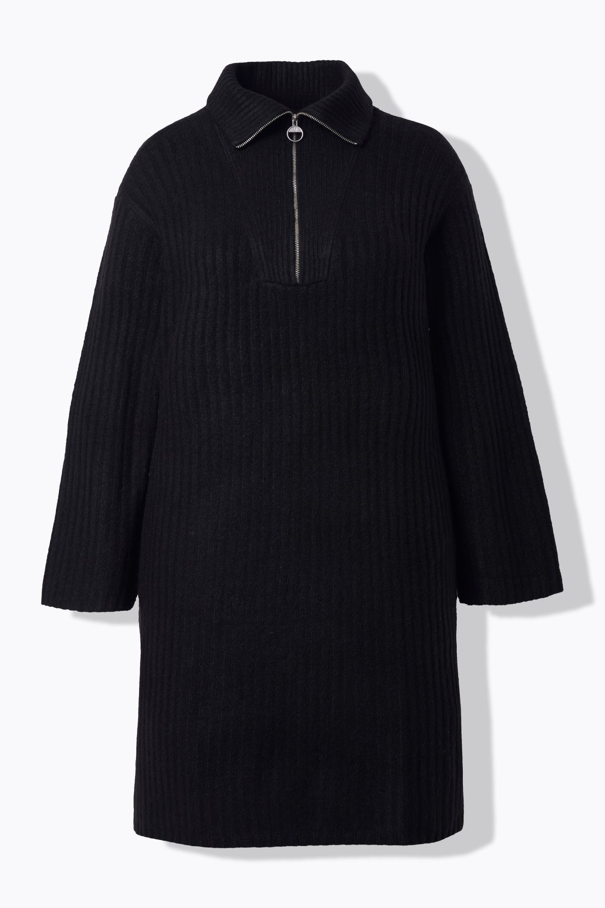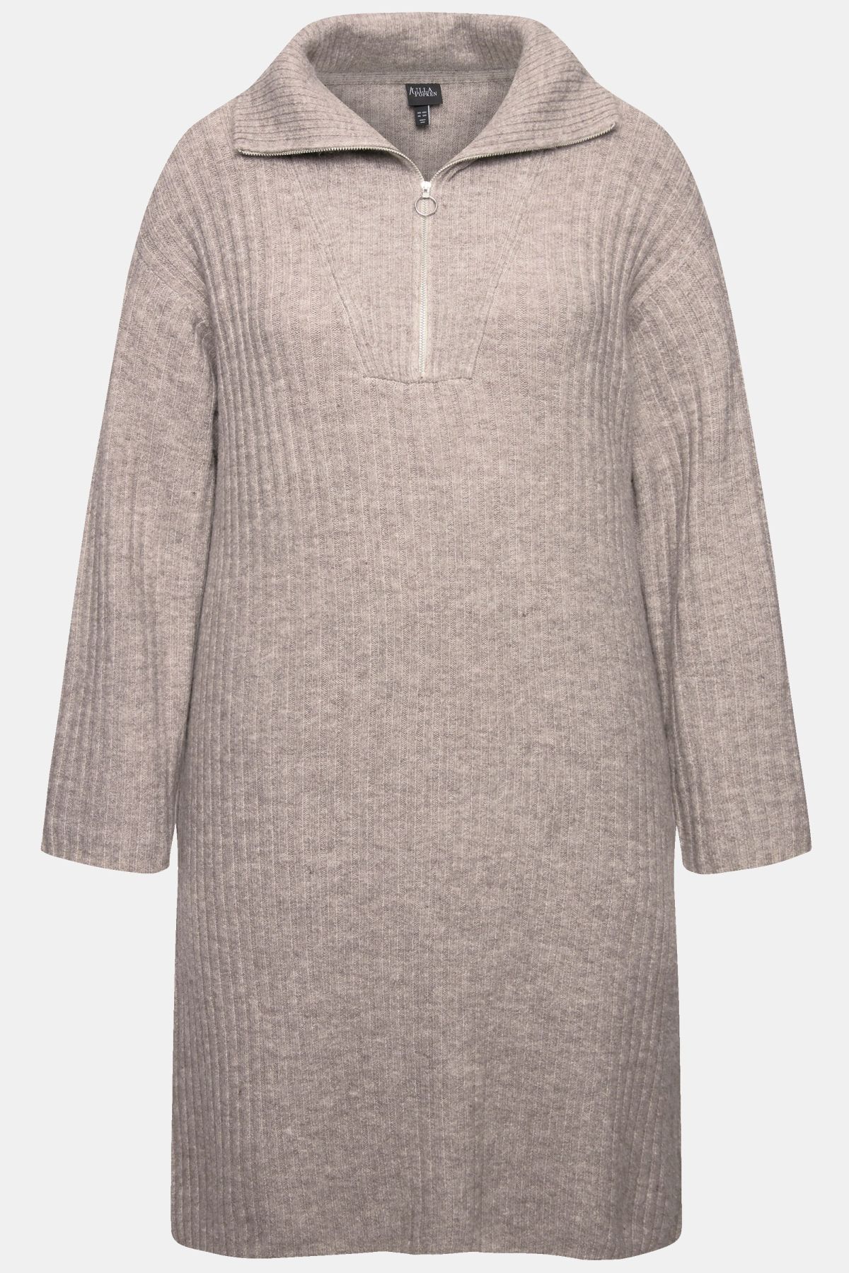 Ribbed Knit Long Sleeve Troyer Collar Dress