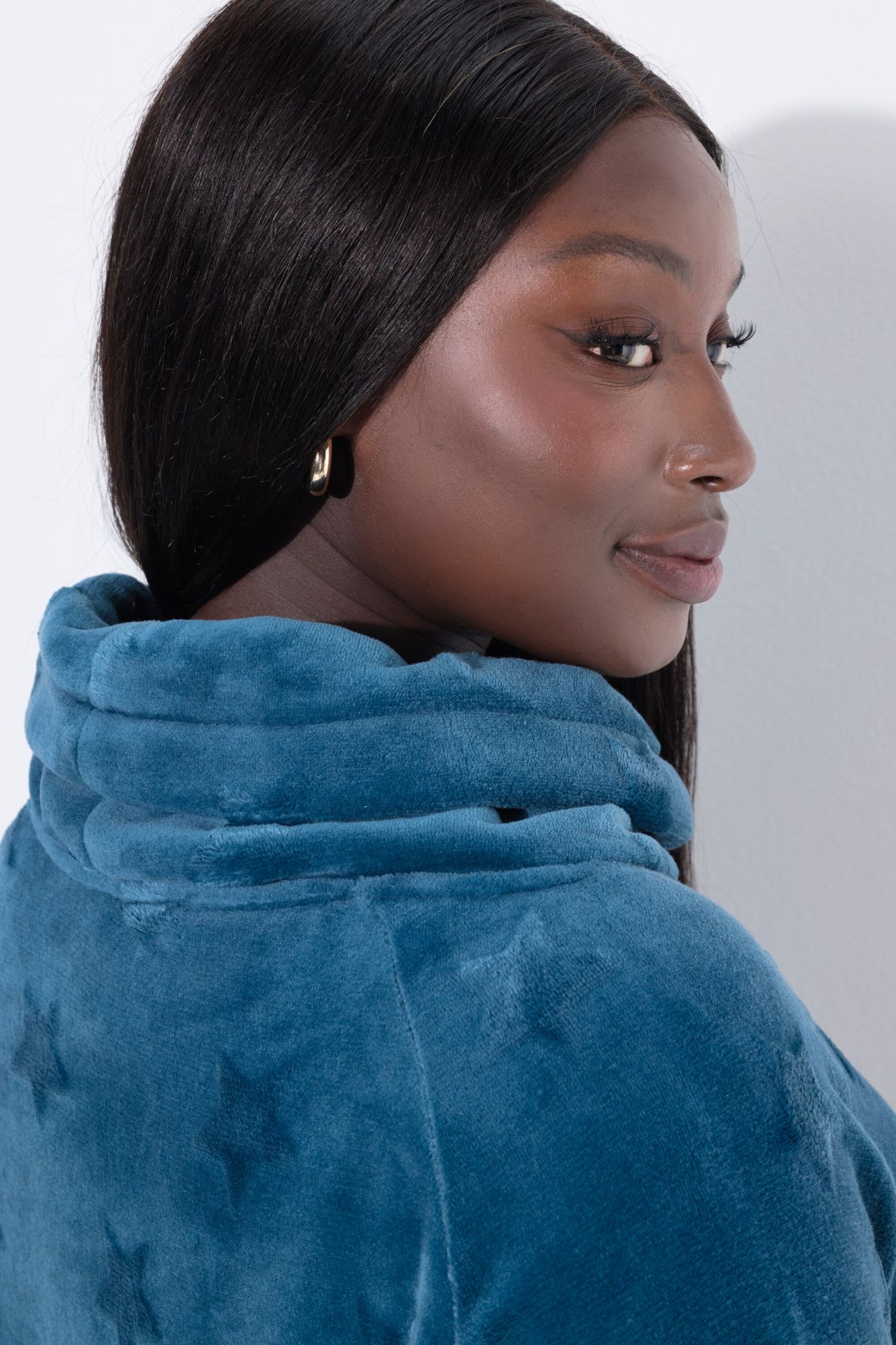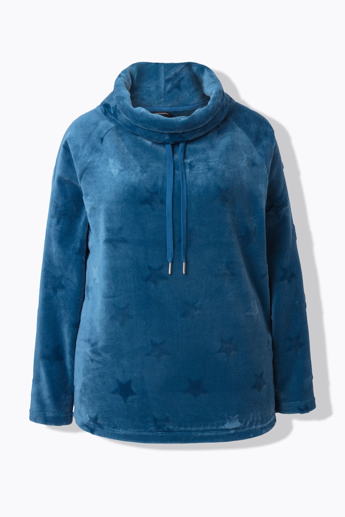 Star Design Velour Knit Lounge Top - just the thing for laid back weekends. Stand-up draped collar with adjustable ties, allover subtle star design. and long raglan sleeves. Matching lounge pants item number 798057770.& 10;<br>