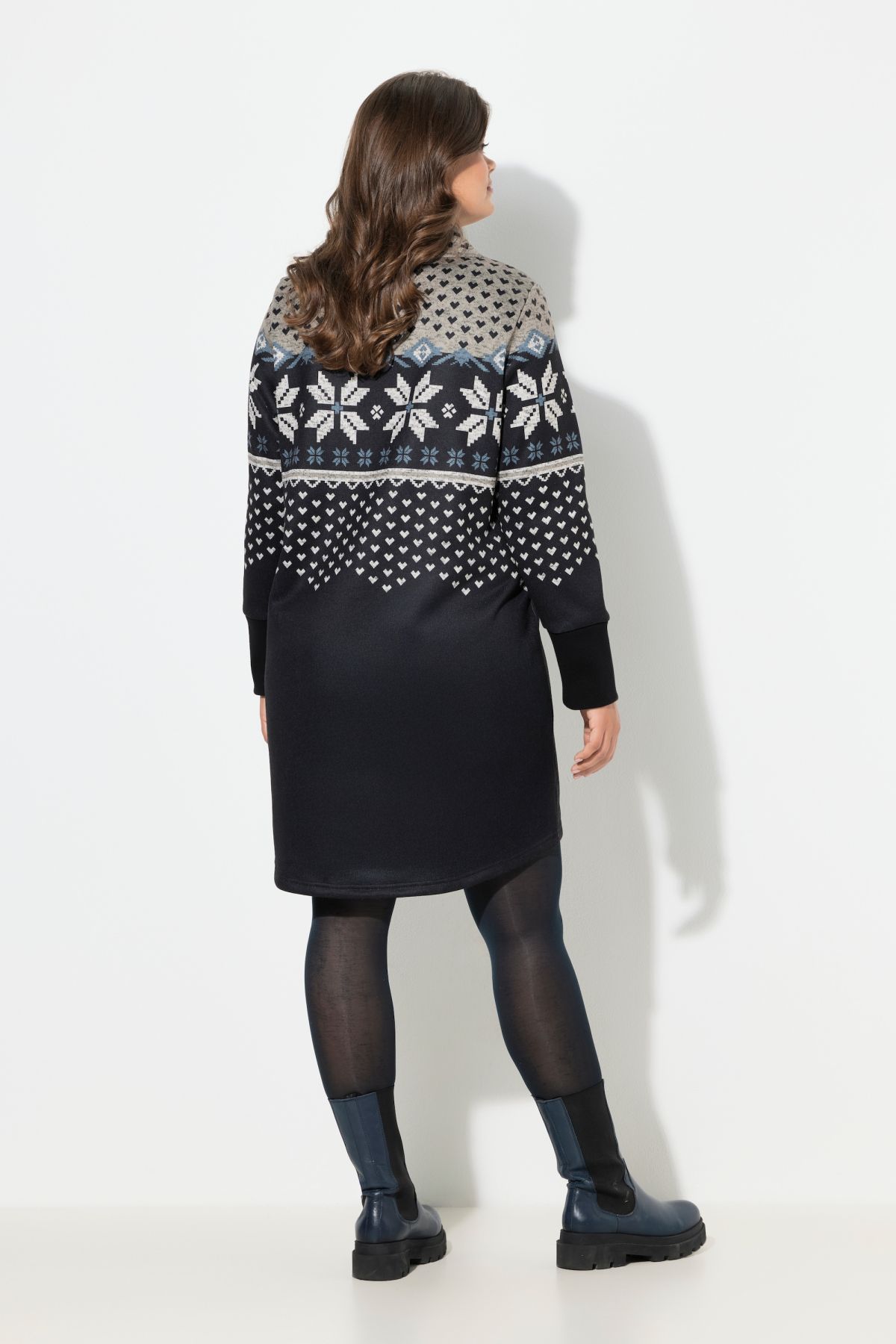 Alpine Pattern Sweater Dress - With cozy teddy fleece lining for cuddly soft warmth.
