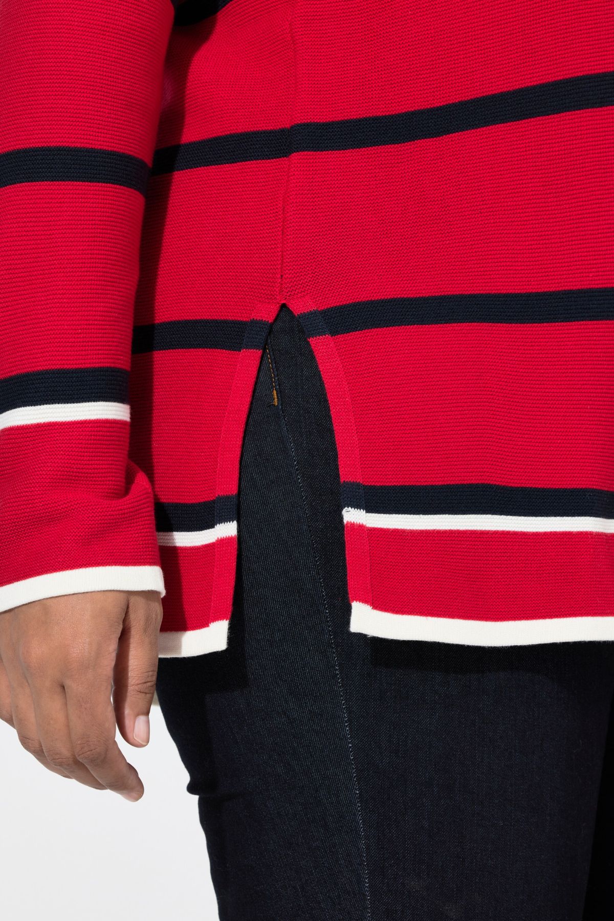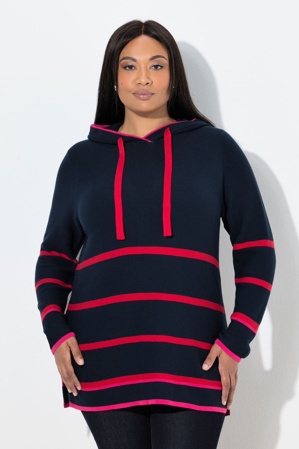 модни райета и цветни акценти, качулка с широка лента, удобна кройка, дълги ръкави, гладки маншети, меко фино плетиво, коригирана дължина около 72-76 см.