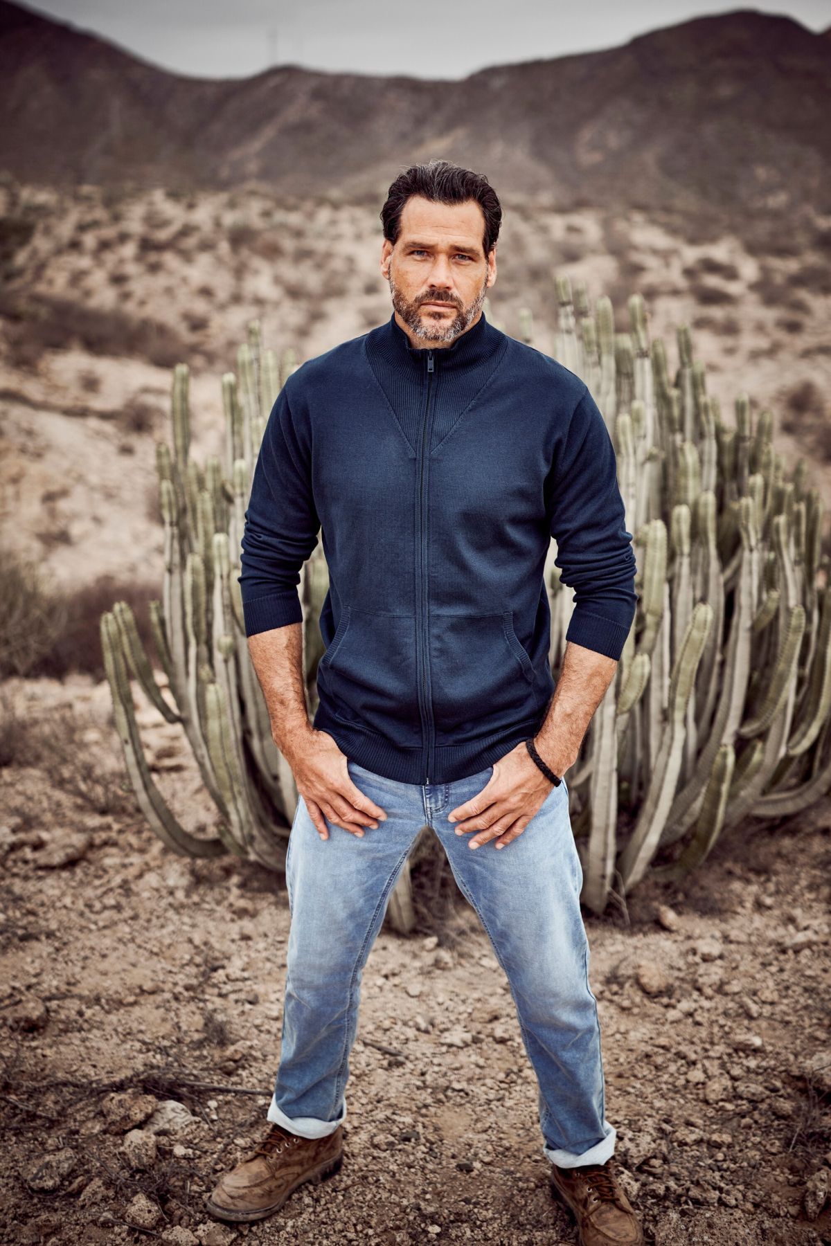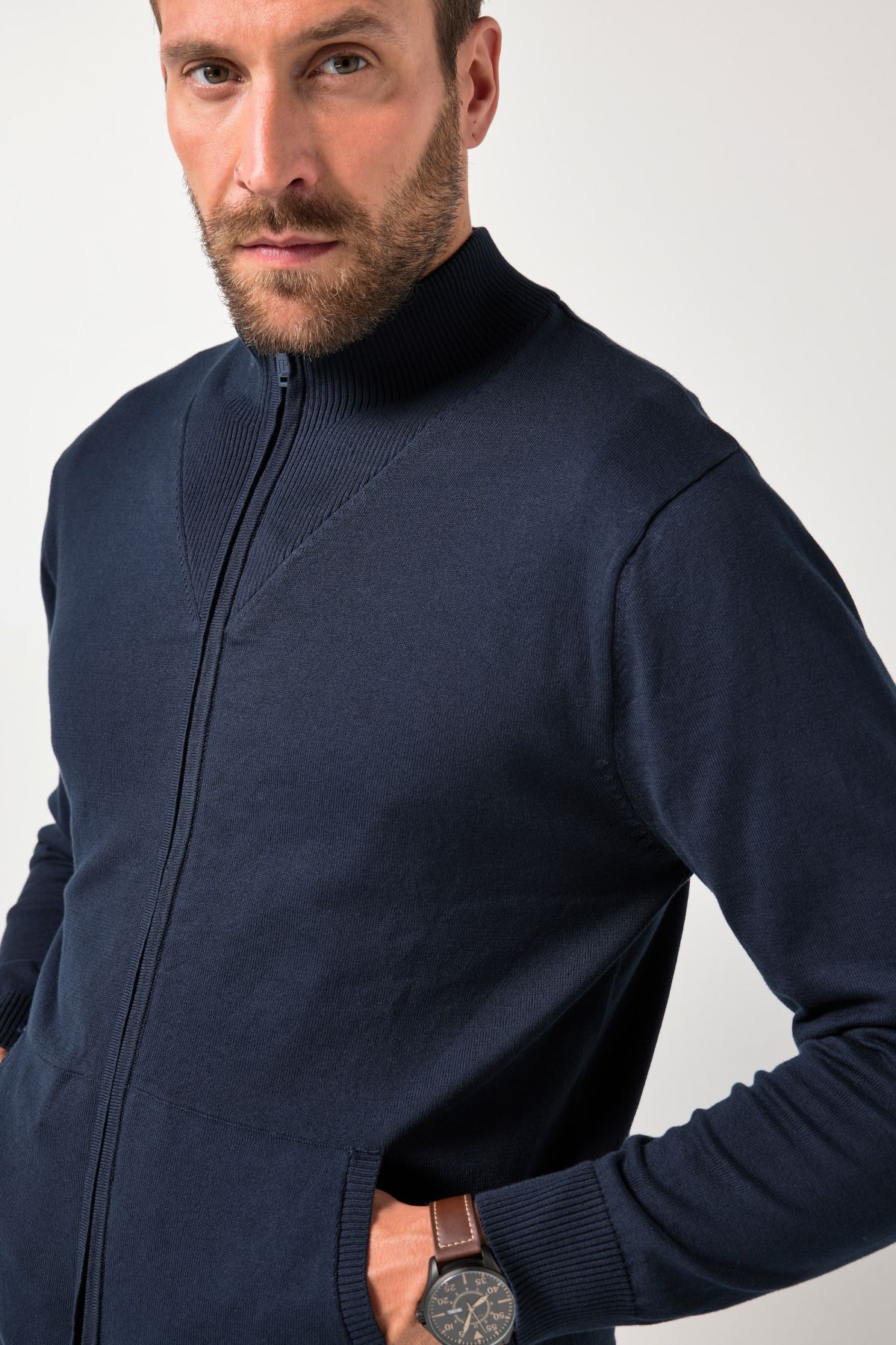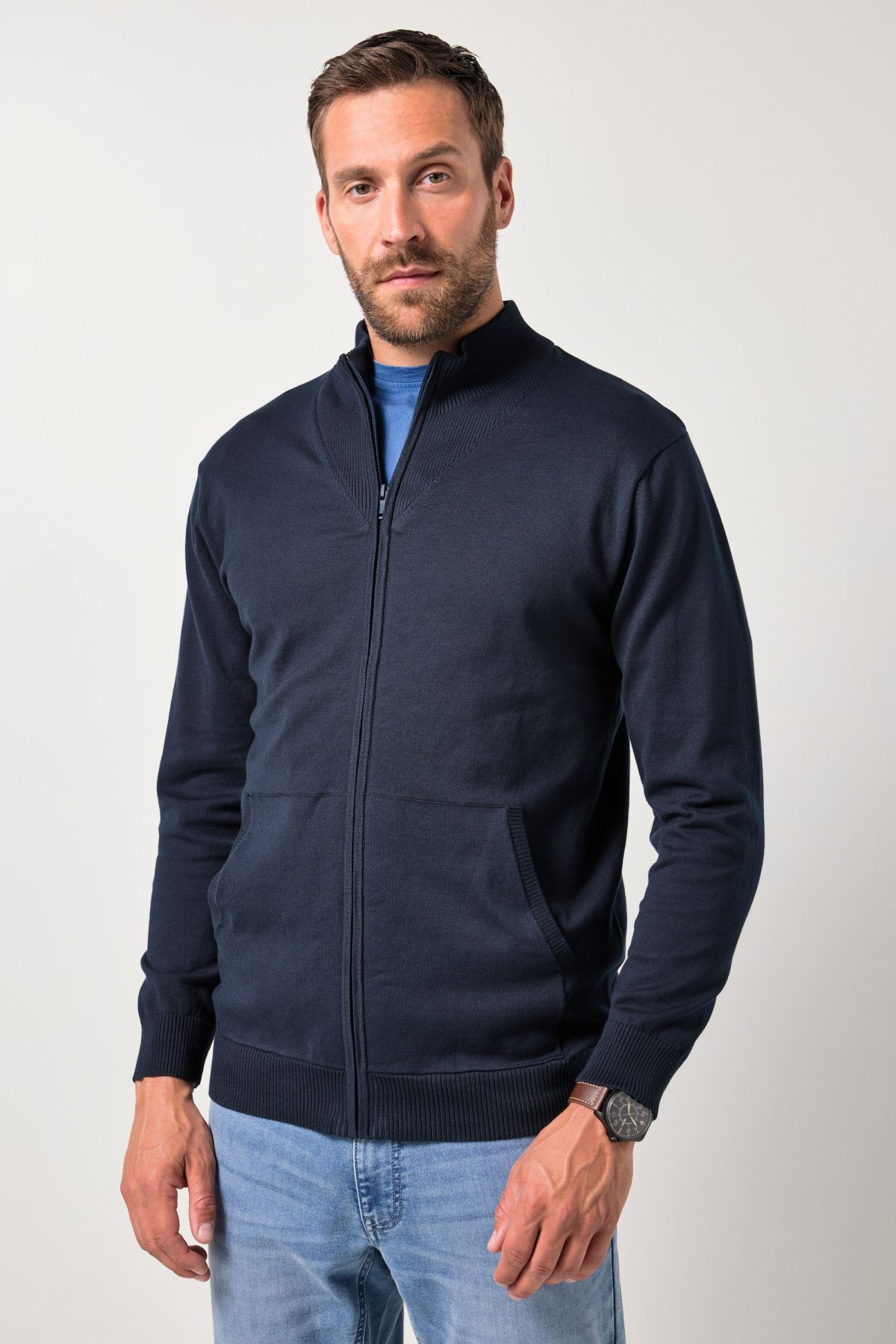 JP1880 cardigan, fine knit, stand-up collar, zip fastening, up to 7 XL