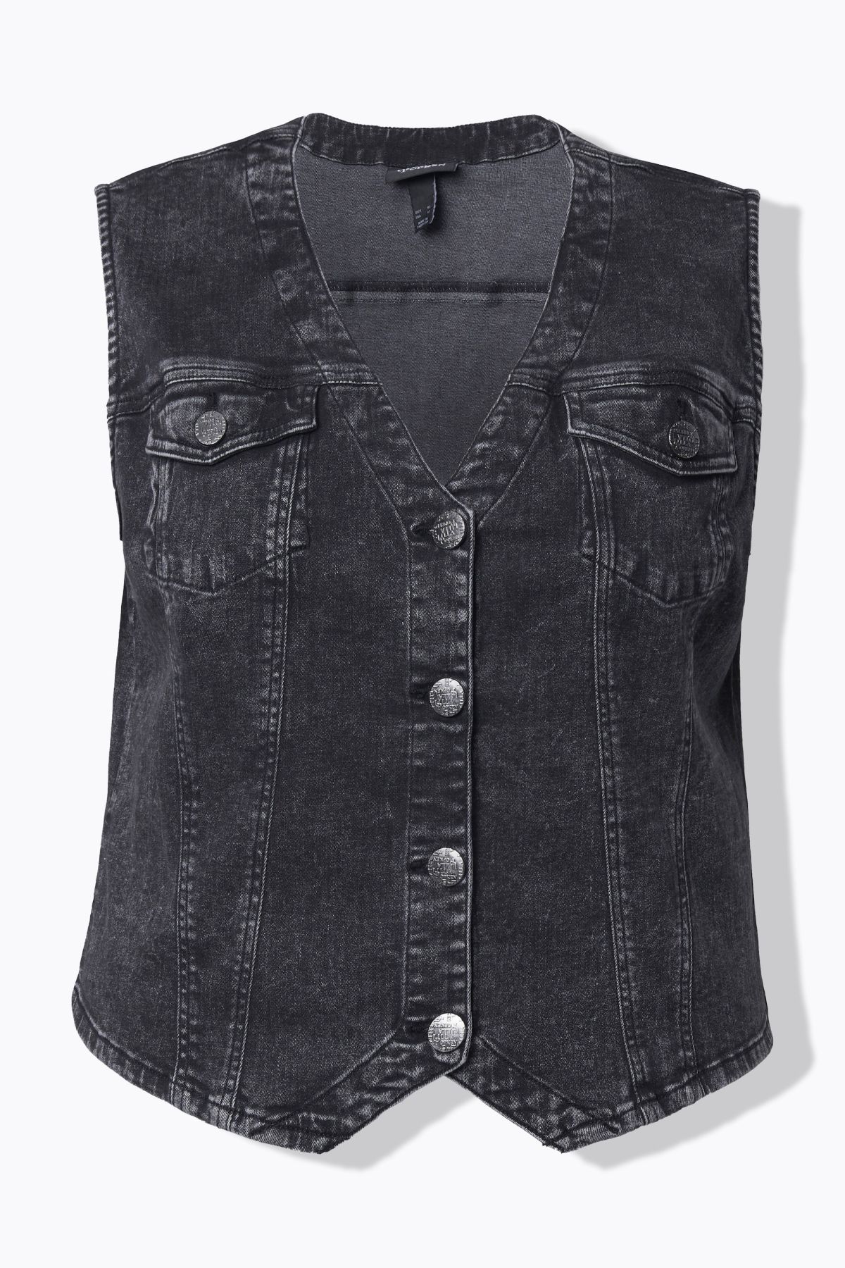 Denim Vest - Add a little edge to your look with this pointed hem style.