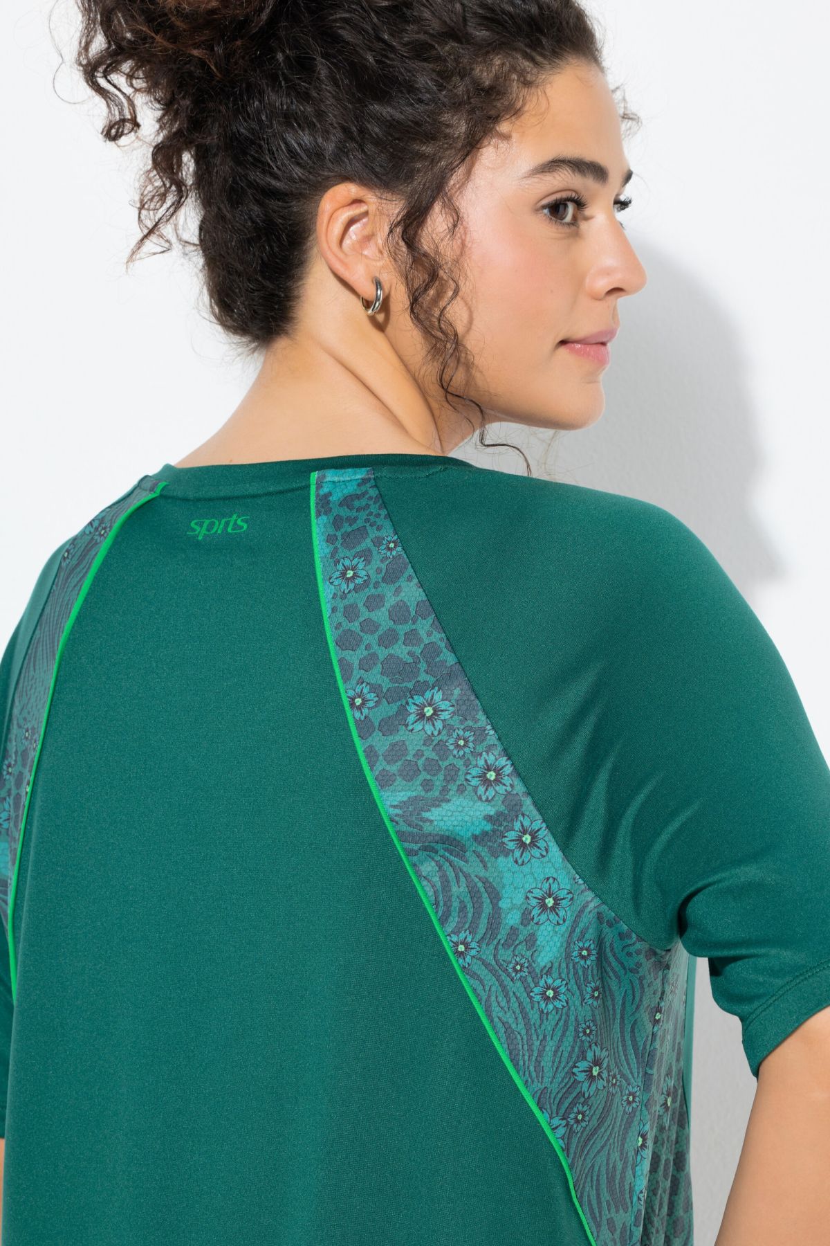 Странични панели с флорален/леопардов принт, V-образно деколте, приятно еластичен трикотаж, дишащ и бързосъхнещ, по-добър за околната среда: с рециклиран полиестер, дължина, регулирана по размер, приблизително 68-76 см.