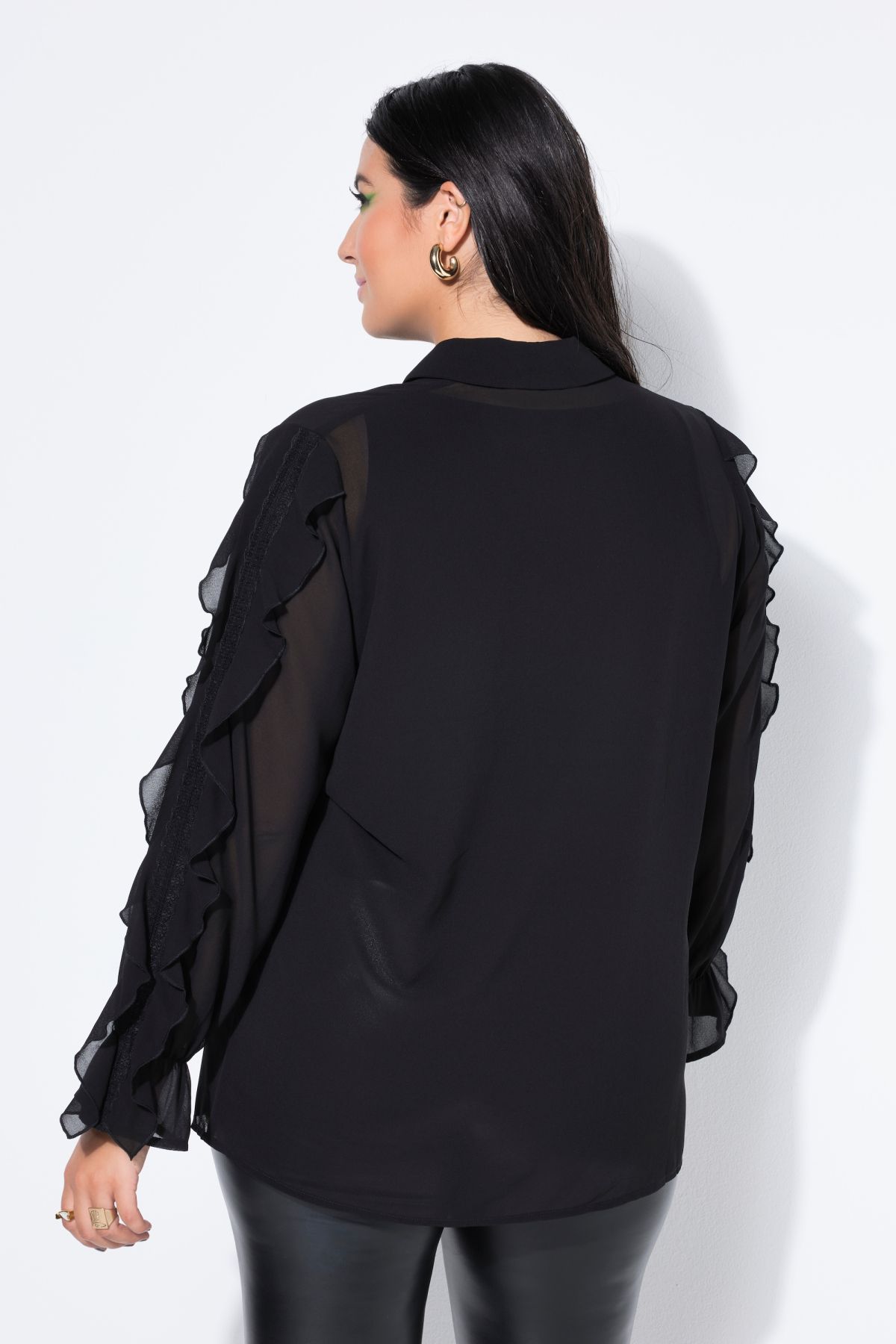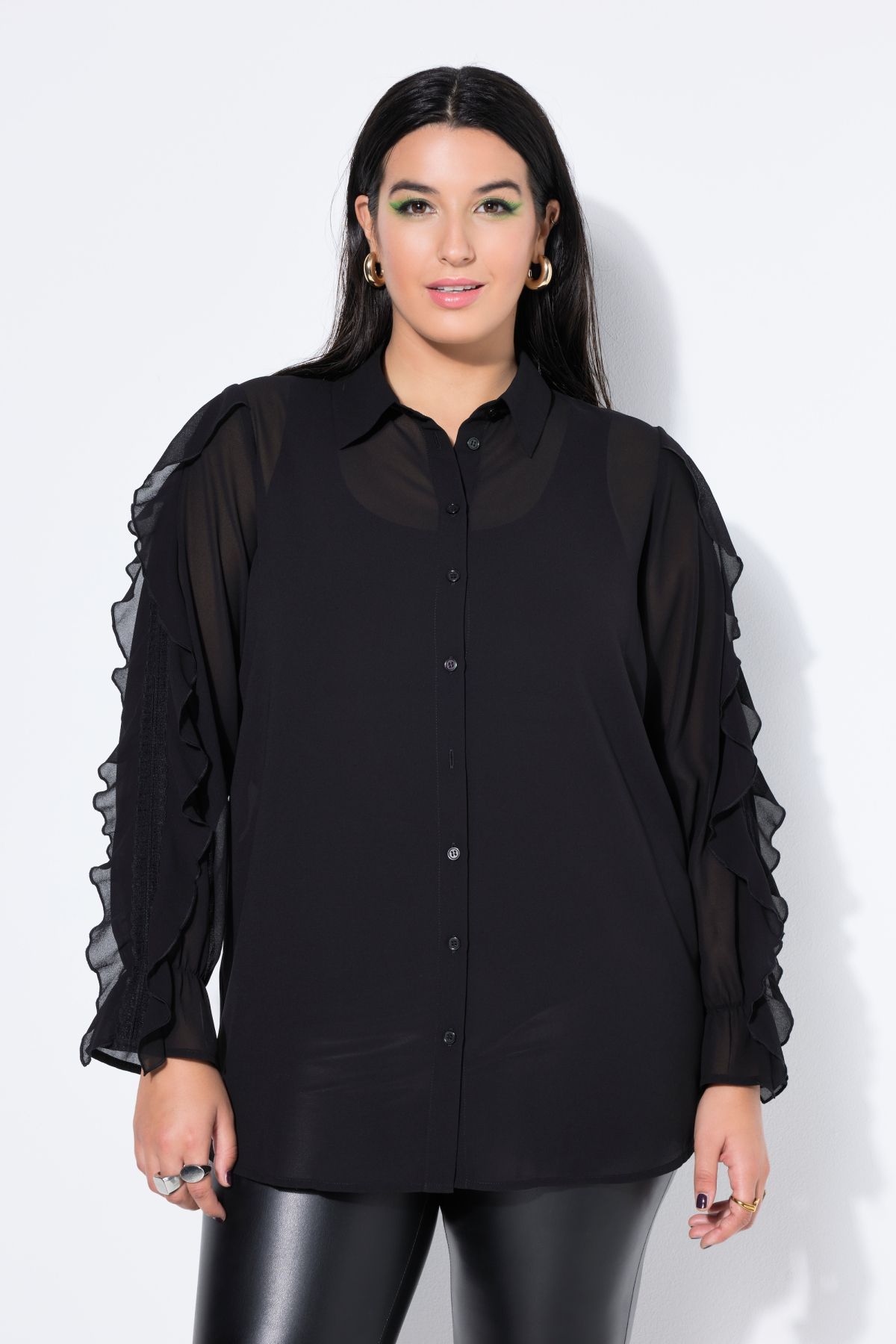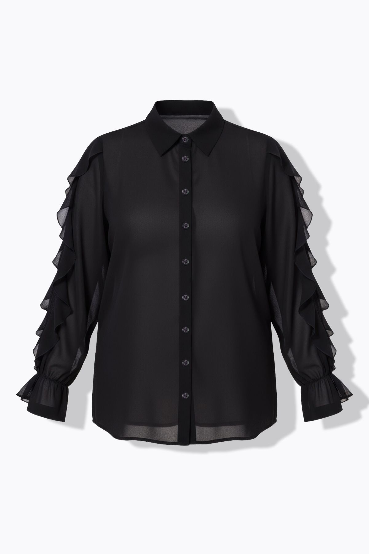 Chiffon blouse, oversized, transparent, flounces, long sleeve