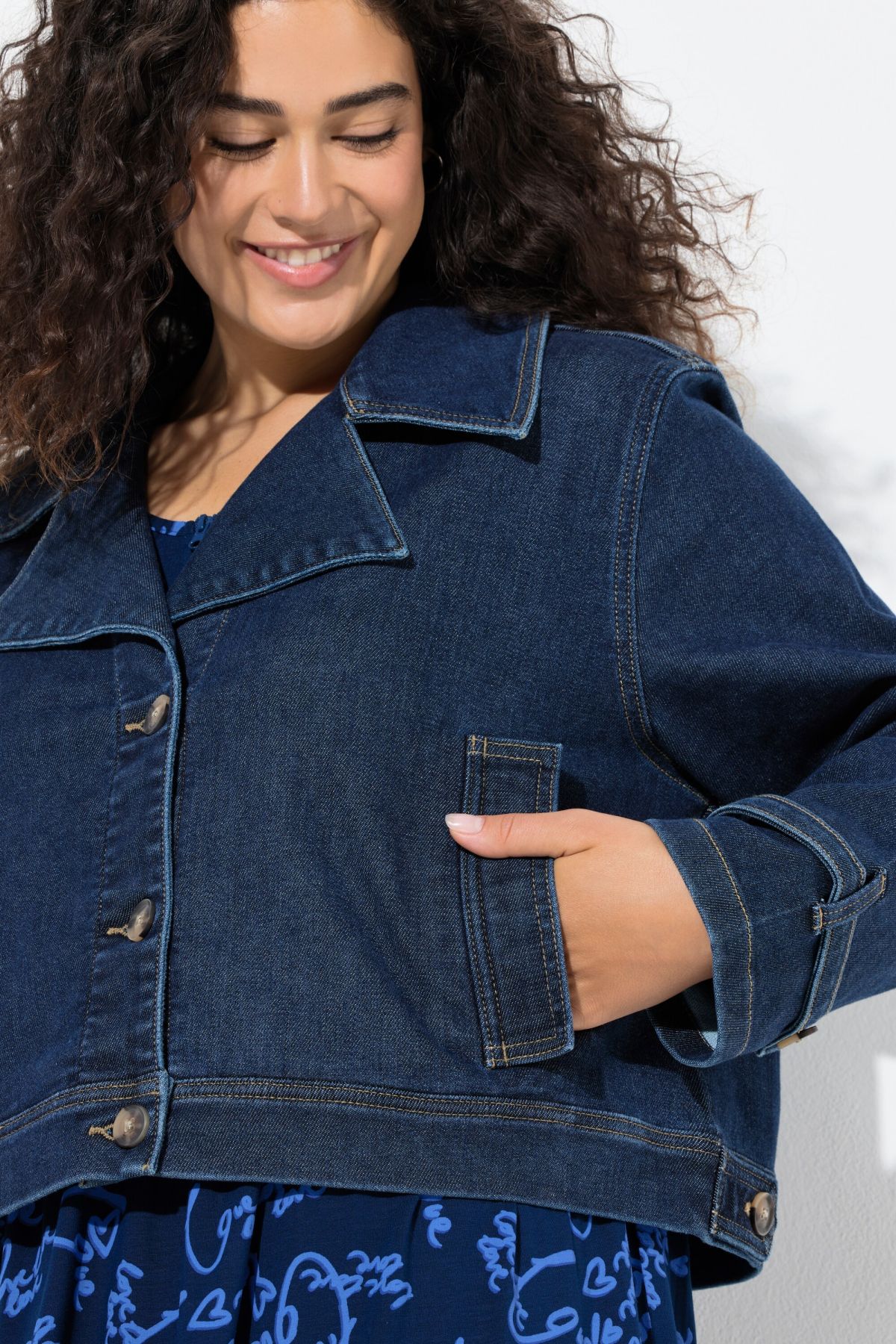 Cropped Denim Jacket - The perfect springtime layering pick with a large lapel collar and a short, cropped length.