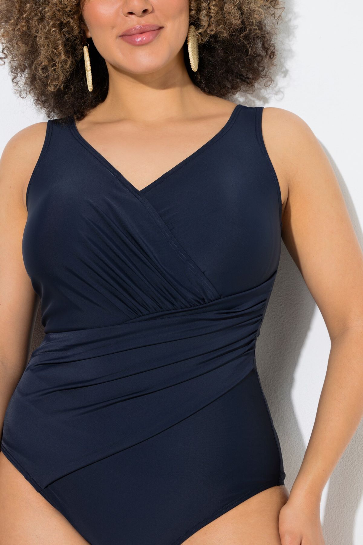 Draped One Piece Swimsuit - An elegant, draped silhouette that pairs effortlessly with any pool-side look.