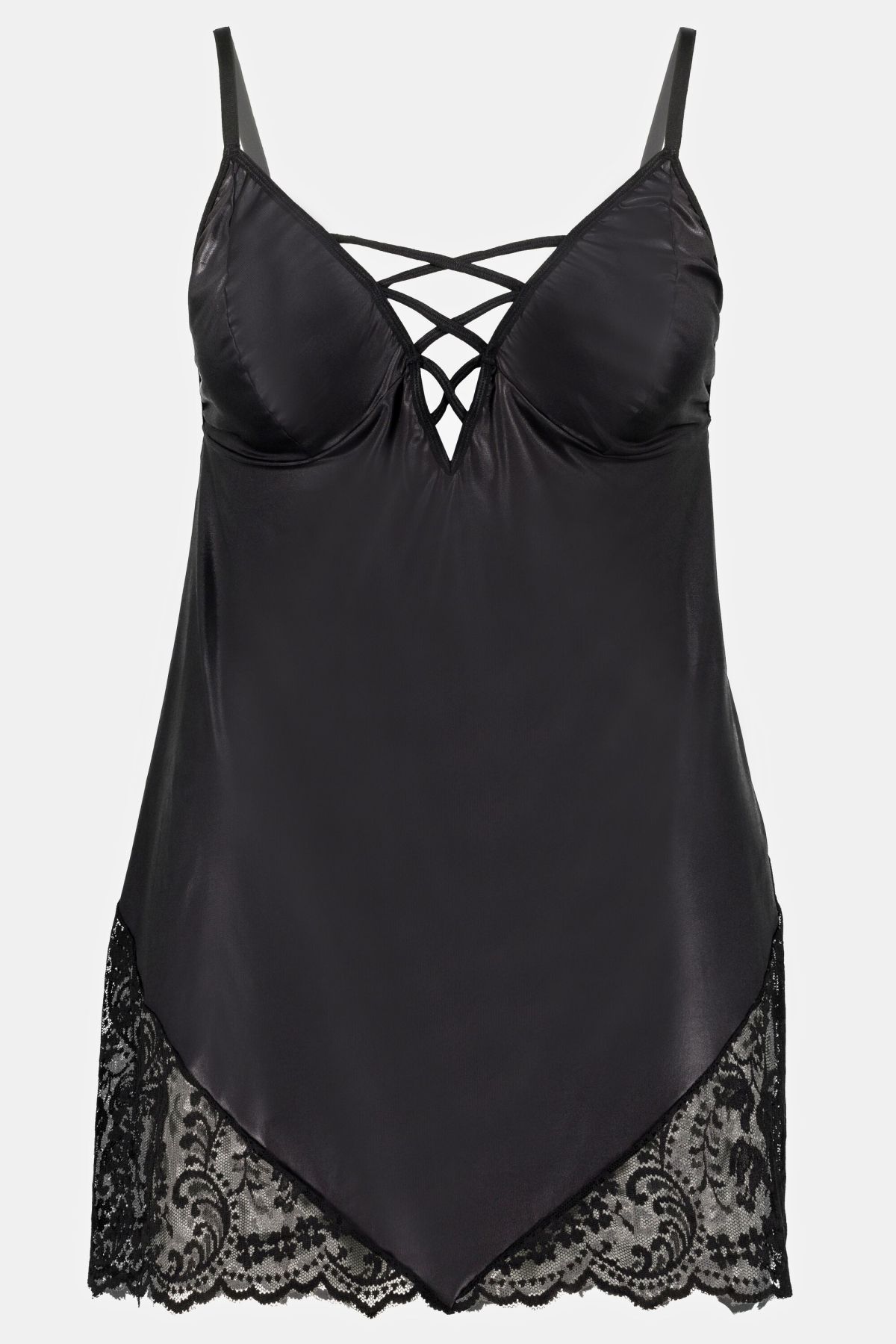 2 Piece Faux Leather Negligee Set - A dramatic plunging neckline and bold wet-look faux leather finish you'll want to show off.