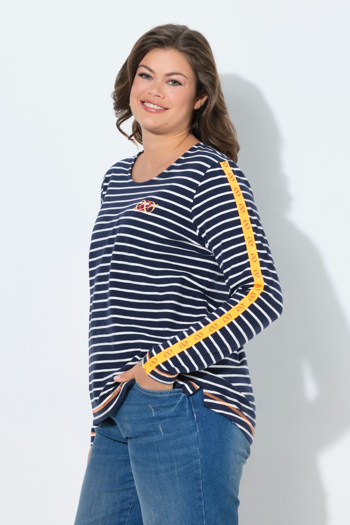LAURASØN THE NORDIC ALL-WEATHER BRAND, кръгло деколте, дълги ръкави с неонова лента, странична цепка, по-дълъг подгъв отзад, дължина, коригирана според размера, приблизително 70-78 см.