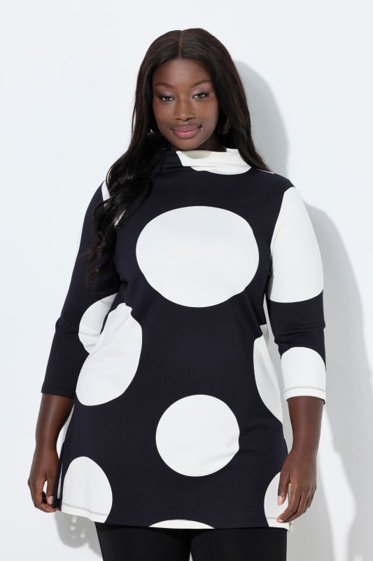 Polka Dot Turtleneck Sweatshirt Dress A polished, turtleneck style with oversized polka dots for a 60's mod-inspired style