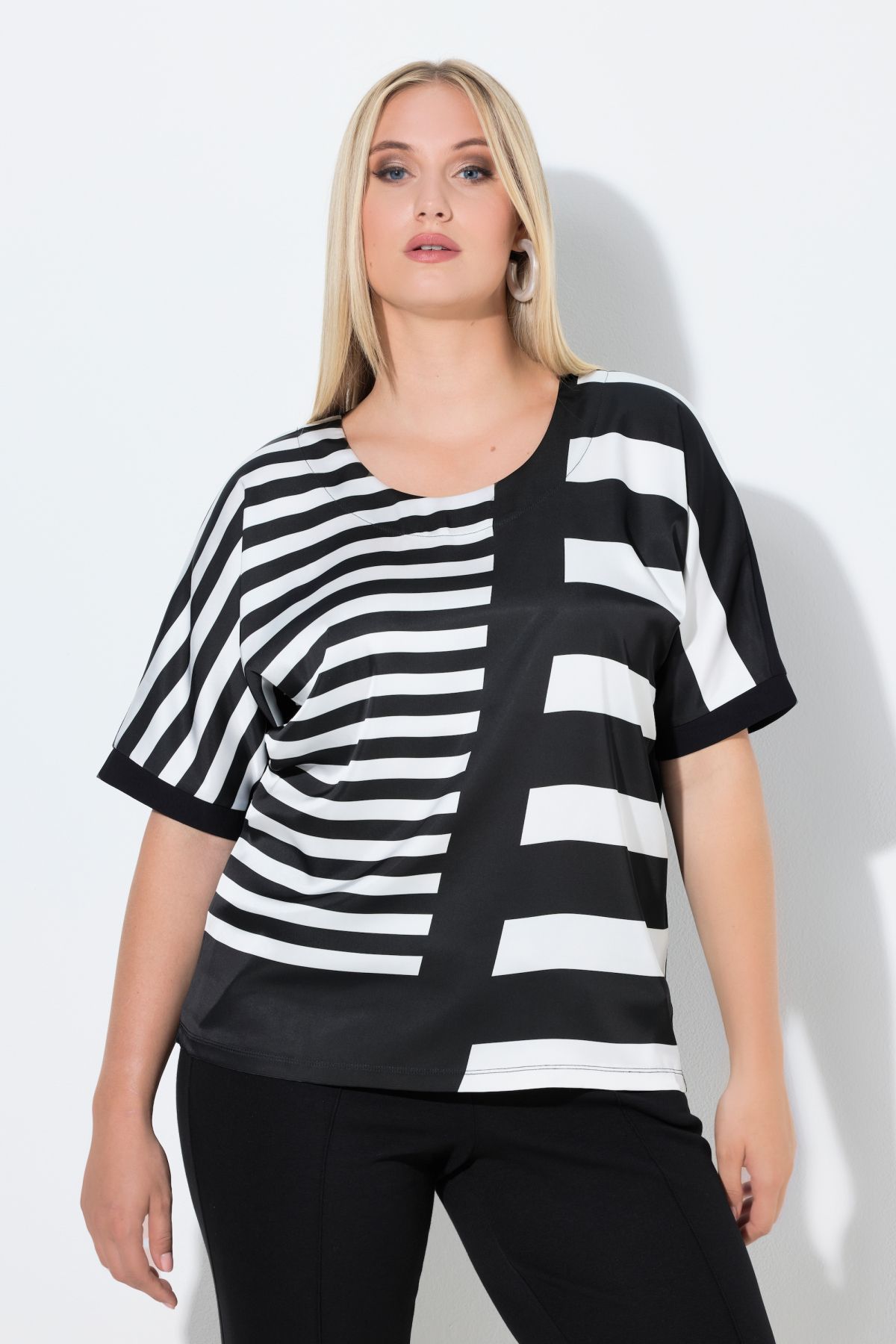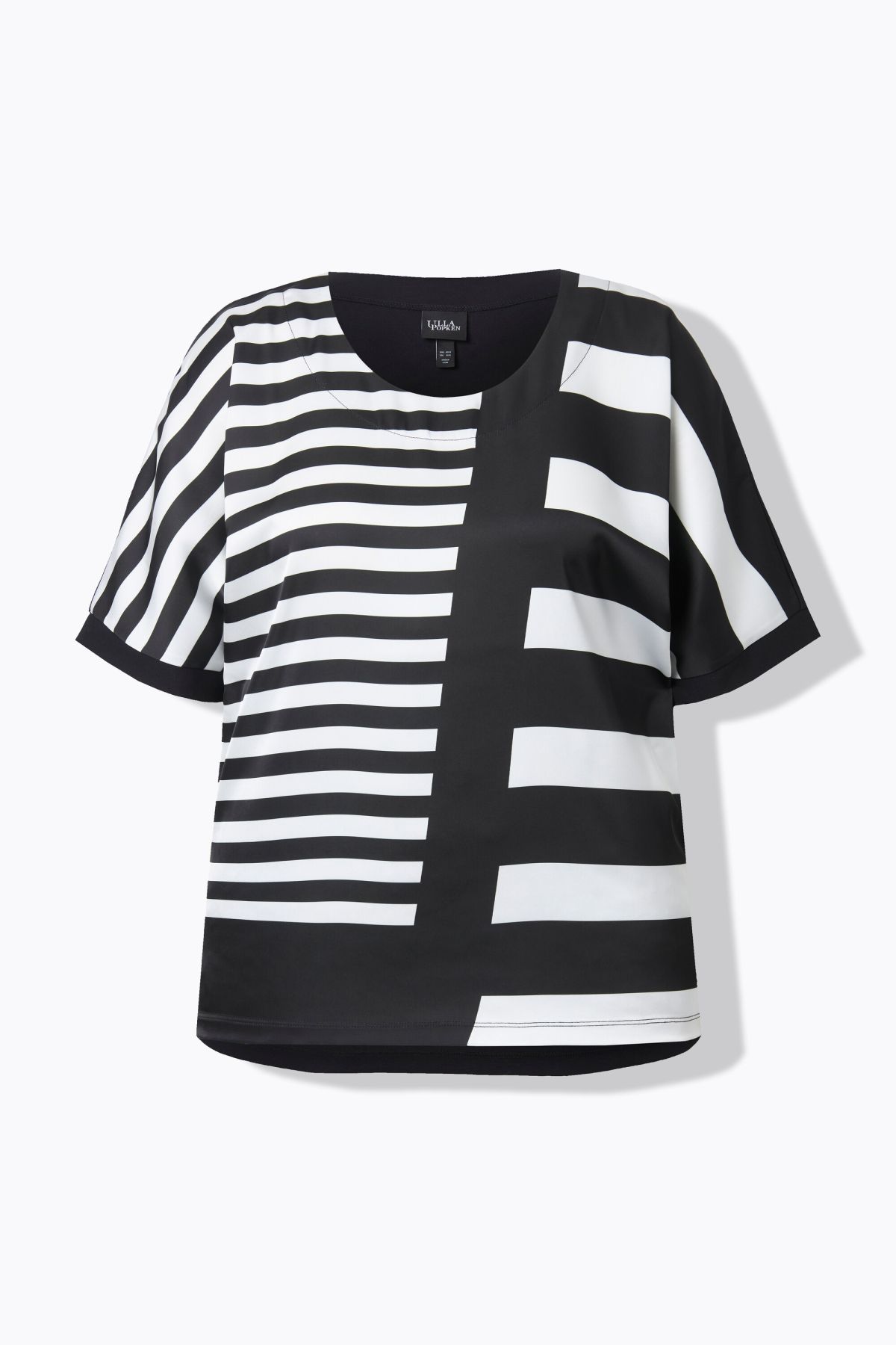 Striped Mixed Material Tee Shimmering satin and stretchy jersey combine for a comfortable but polished vibe.
