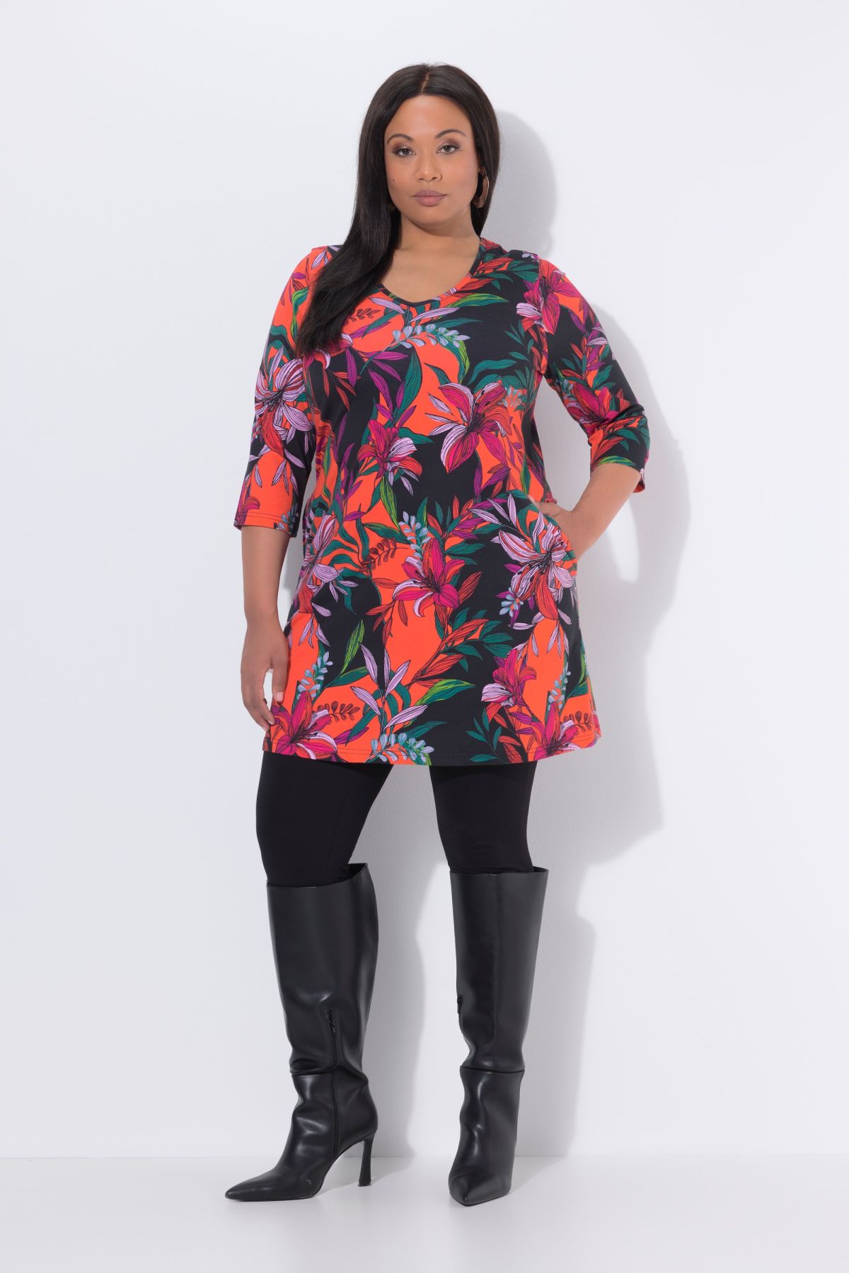 Tropical Flower Knit Tunic Dress