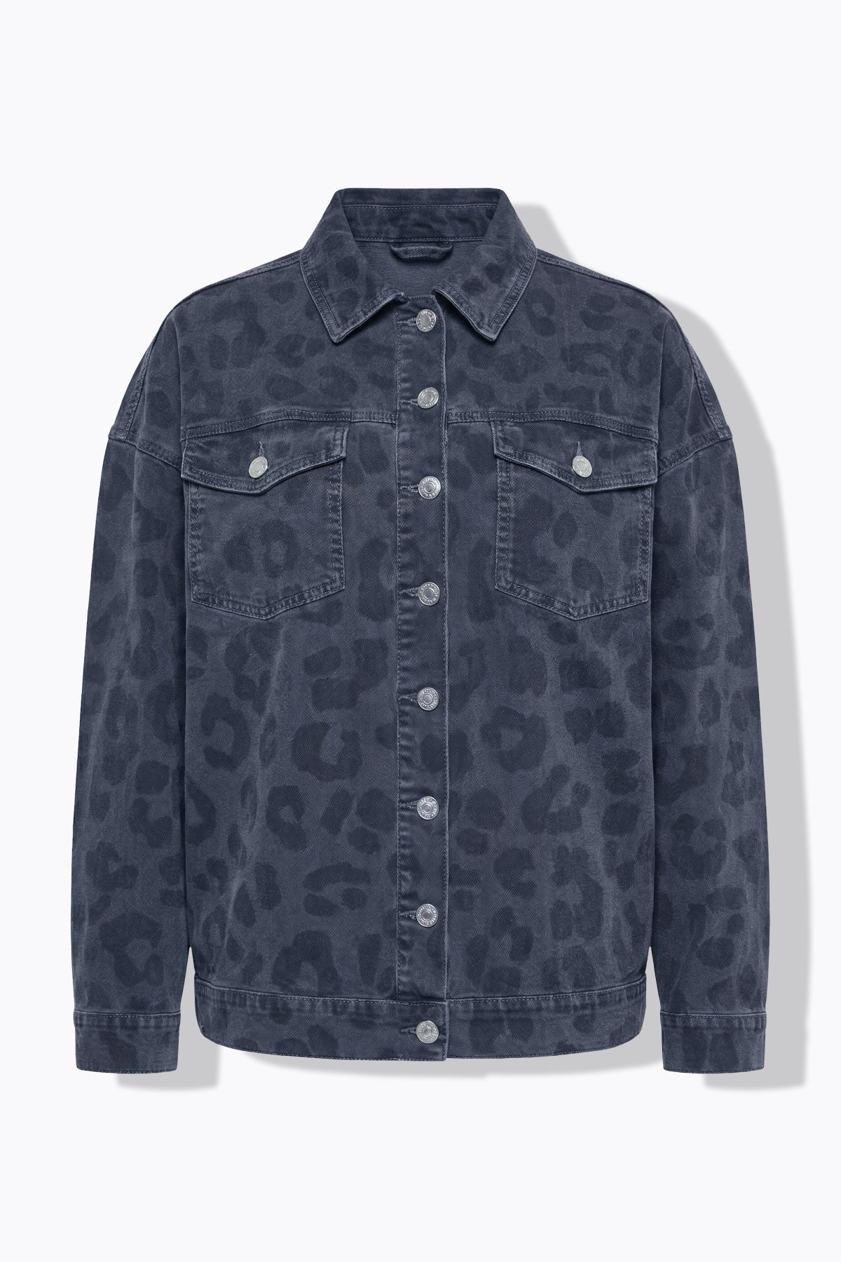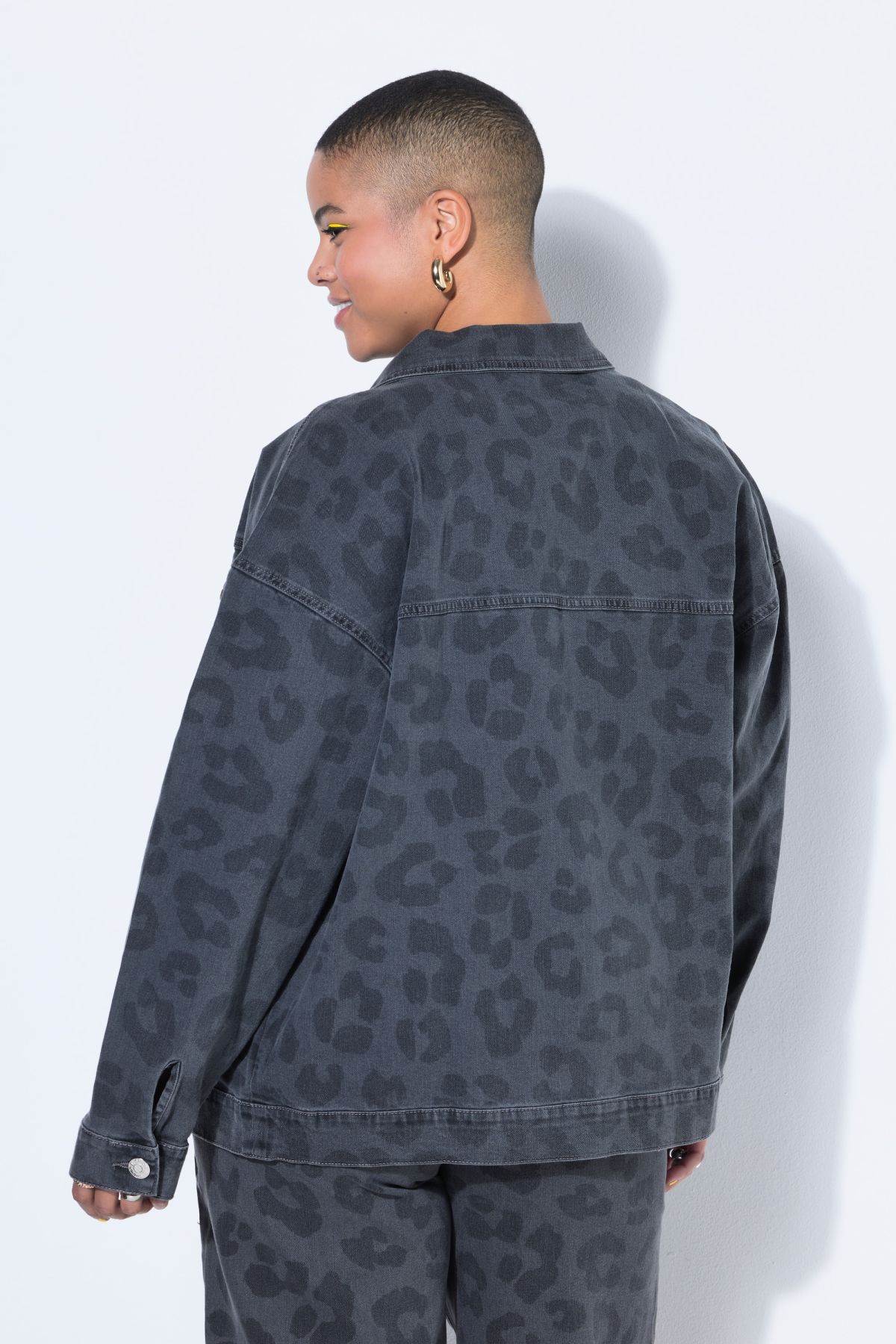 Denim jacket, oversized, grey denim with leopard print