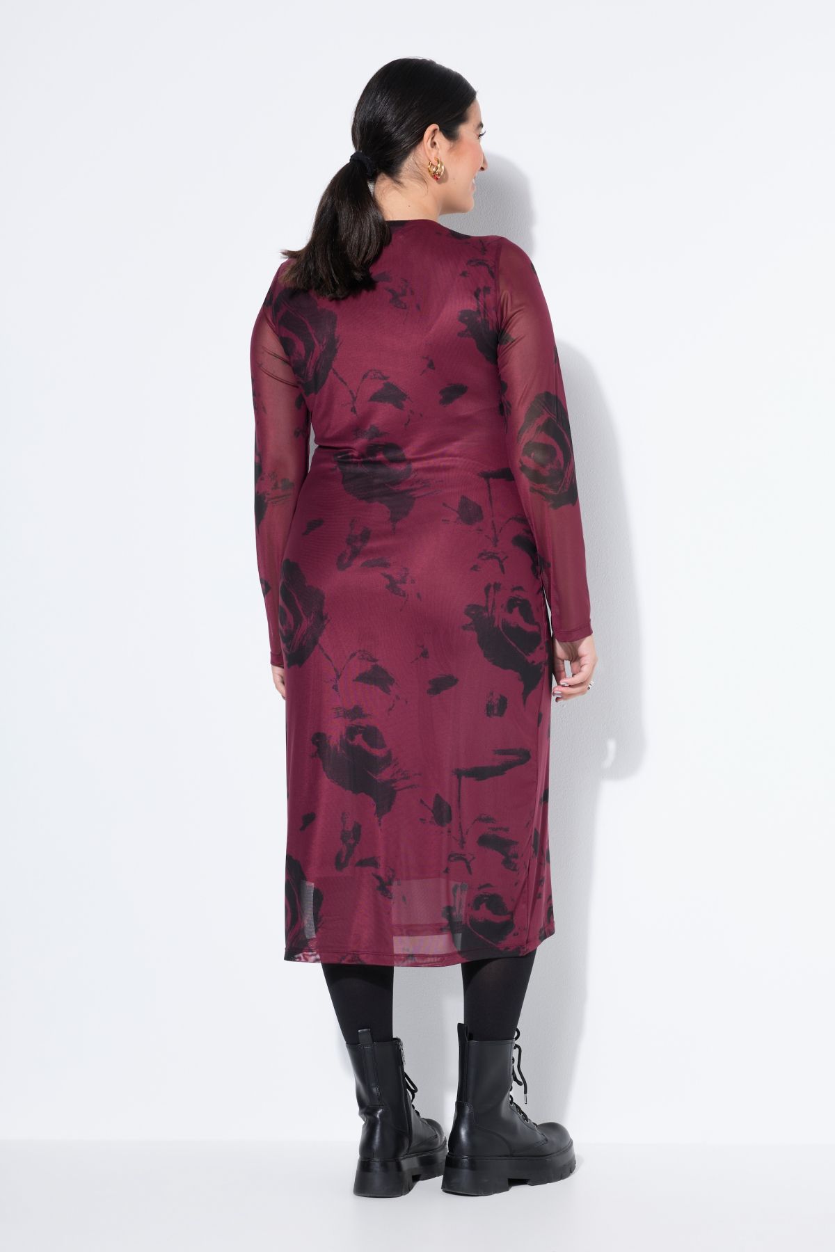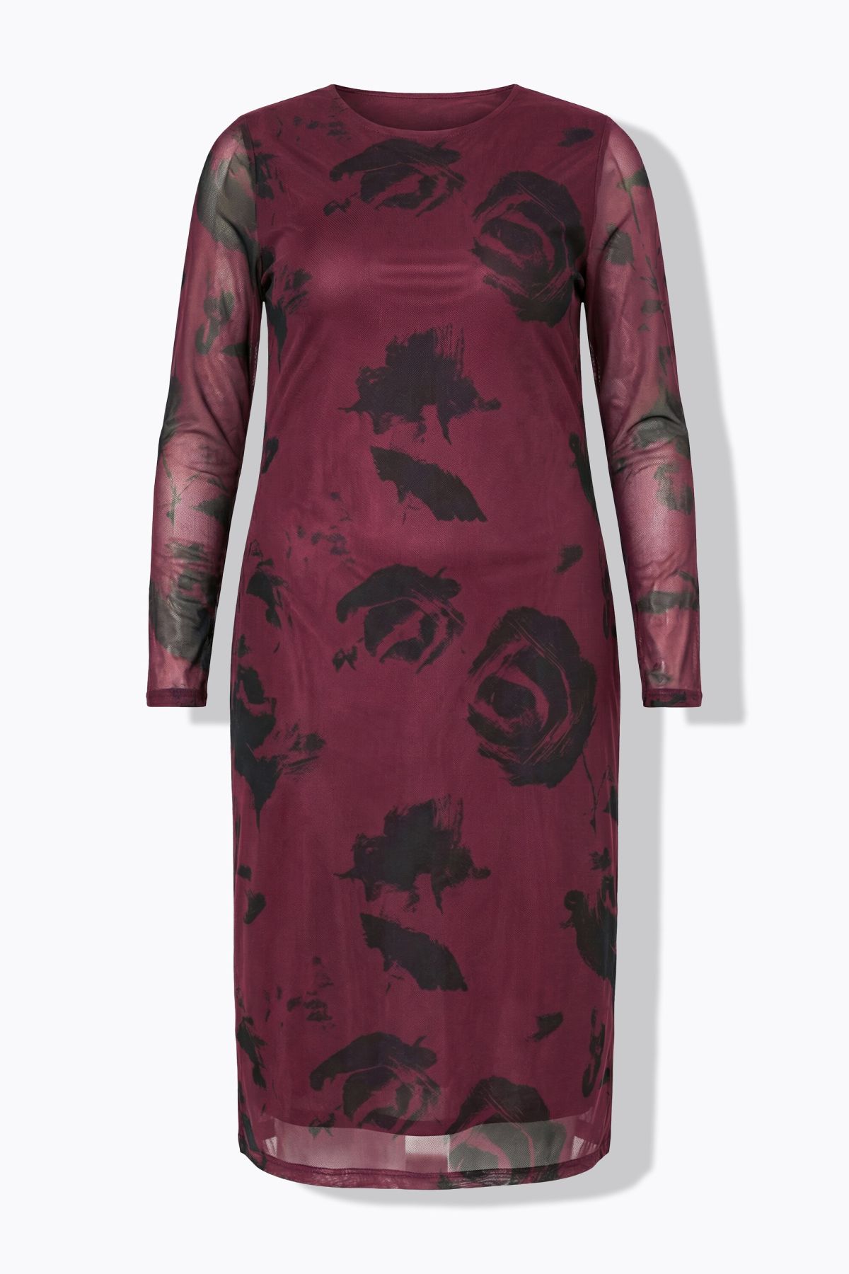 Maxi dress, slim shape, mesh with motif, long sleeve