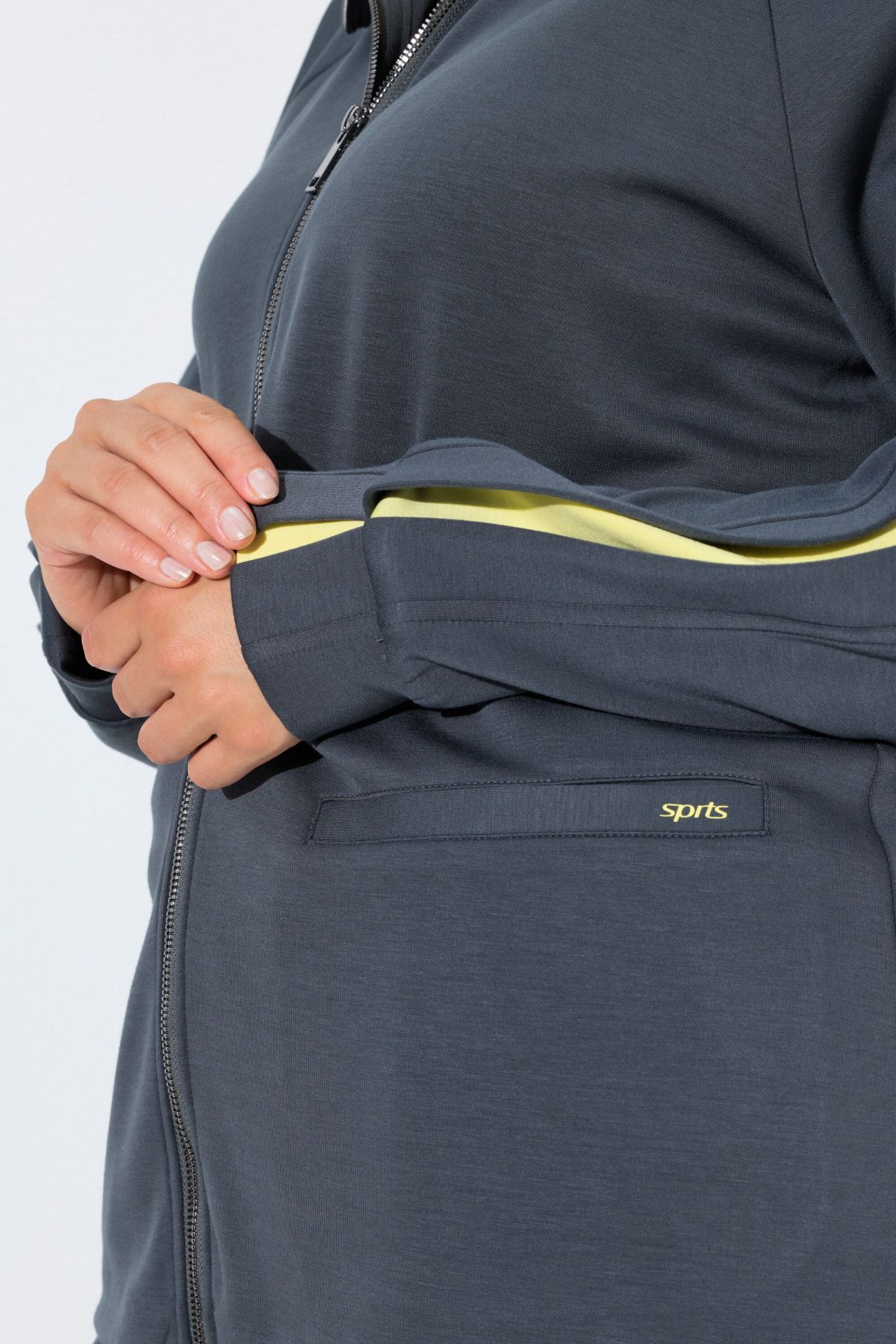 Cool-Down Sweatshirt A stretchy fleece design perfect for post-workout cool-downs.