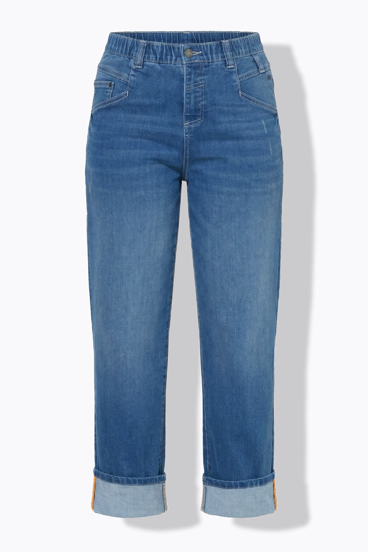 Wide Leg Cuffed Jeans - Featuring decorative seams and shaped embroidered pockets.